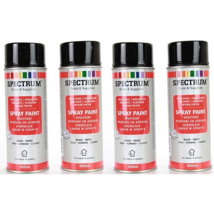 Peinture en Aérosol - NOIR - Lot de 4 - 400ml - Brillant - Séchage rapide 10 min