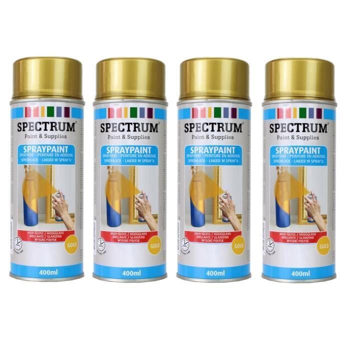 Peinture en Aérosol - Lot de 4 Bombes - Or Brillant - Séchage Rapide 10 min - 400ml
