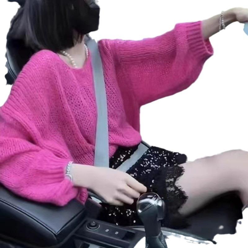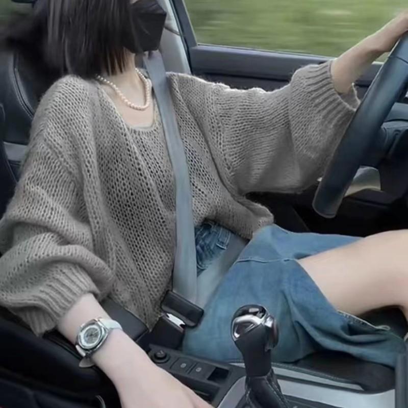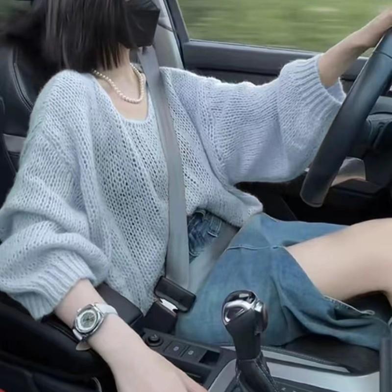 QICED Пуловер с вырезом, мохеровый свитер, женский весенний тонкий свободный ленивый мягкий мягкий вощеный свитер