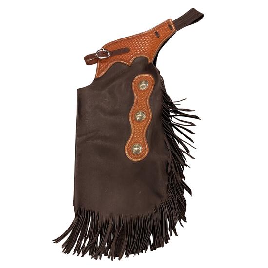 Изготовленные на заказ ковбойские кожаные чапсы в стиле вестерн с бахромой, застежкой-пряжкой