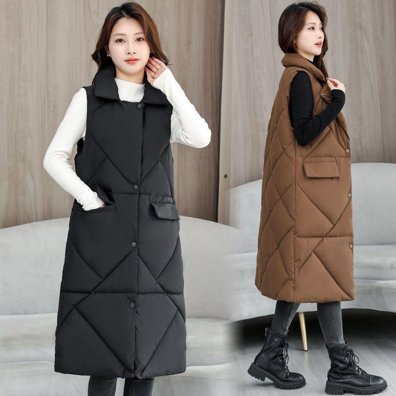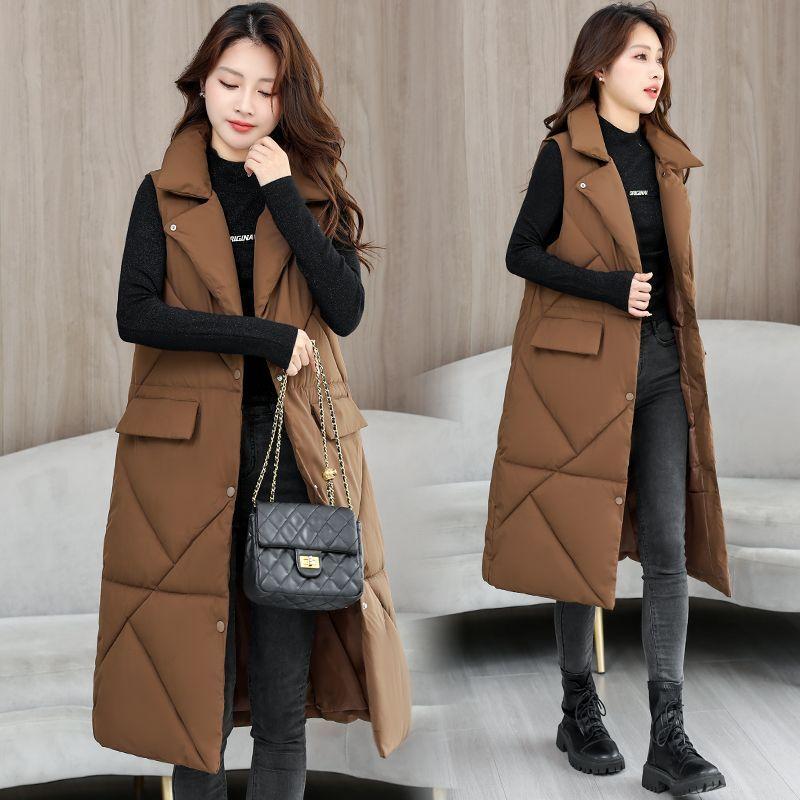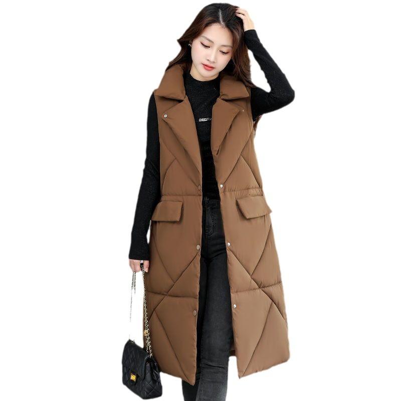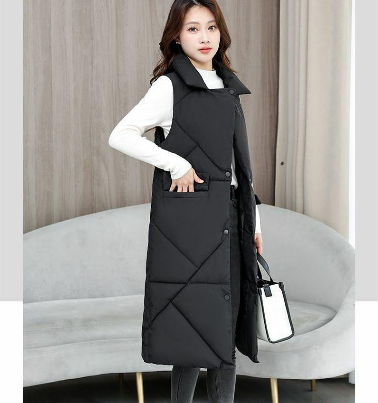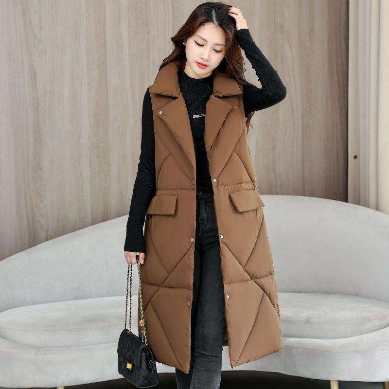 Осенне-зимняя женская однотонная жилетка средней длины без рукавов