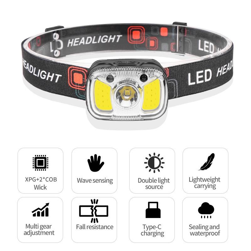 Налобный фонарь, светодиодный налобный уличный фонарик, фонарик для рыбалки, USB перезаряжаемый двойной источник света, сильная фара, велосипедные фонари
