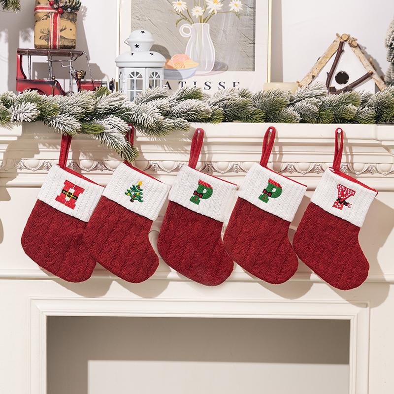 Креативные рождественские украшения Красные вязаные рождественские носки с вышитым алфавитом Цветные подарочные носки с именем своими руками