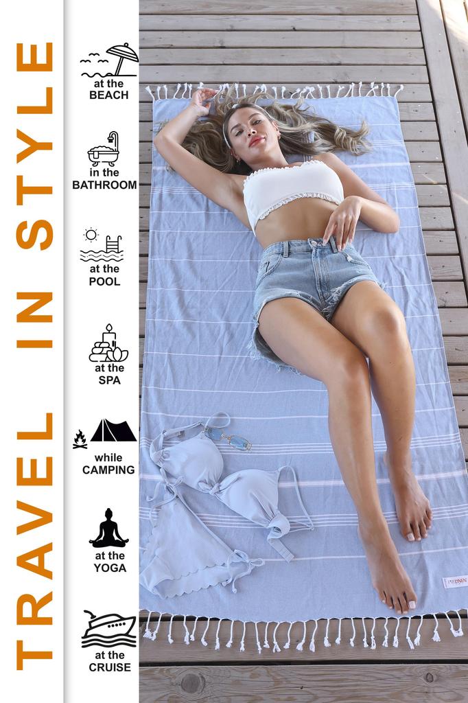 ⭐️ ПУТЕШЕСТВУЙТЕ ДРУЖЕСТВЕННО: Вы будете поражены тем, насколько компактным и легким является турецкое полотенце Evelynen.. После намокания он очень быстро высохнет. А когда вы закончите, просто стряхните песок и сложите его обратно в сумку, которая имеет уникальный дизайн и позволяет стильно носить ее с собой куда угодно.