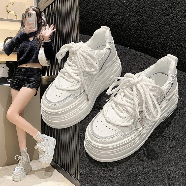 Маленькие белые туфли женские осенние толстые подошвы для пожилых людей с чувством повседневного спорта в высоких туфлях-булочках