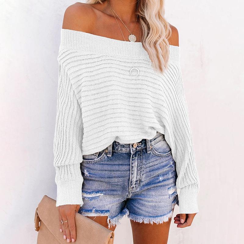 Женский вязаный свитер весна-лето 2023: Европейский/американский стиль, полосатый рукав «летучая мышь», дизайн с открытыми плечами