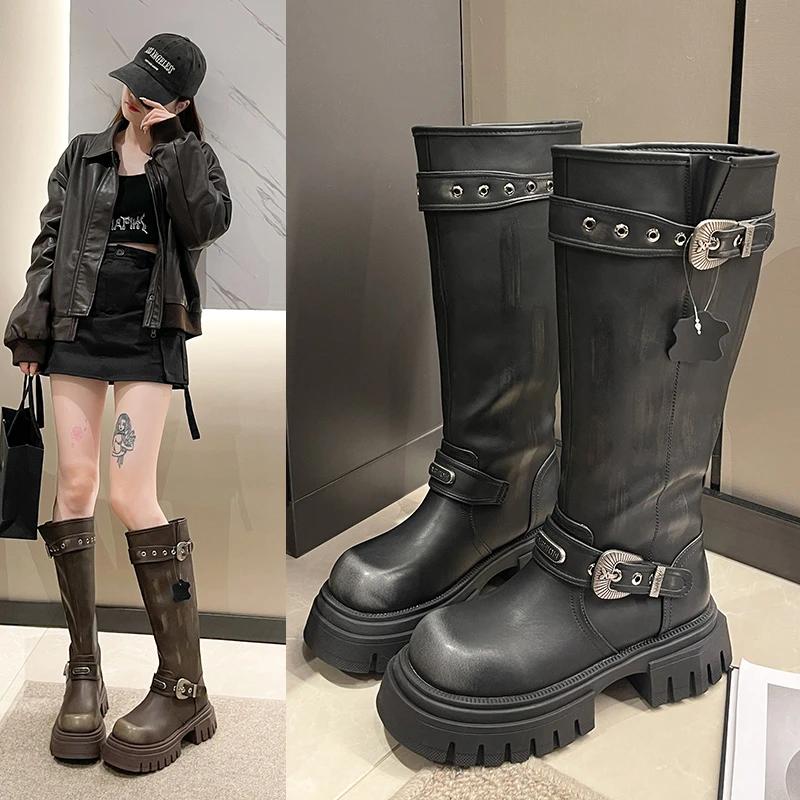 Брендовые дизайнерские женские сапоги до середины голени на толстой платформе в стиле панк-байкер, длинные ботинки, готическая уличная обувь для женщин — купить товар онлайн с бесплатной доставкой до всему миру!