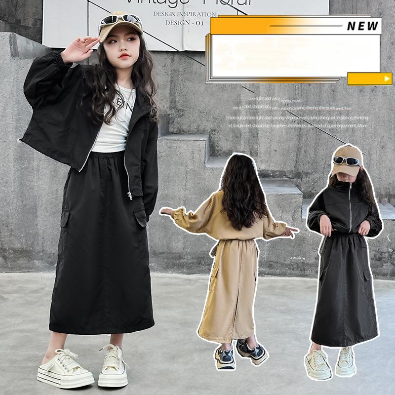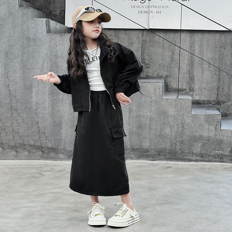 Модная осенняя детская повседневная куртка с длинными рукавами и юбка для девочек в корейском стиле из двух частей