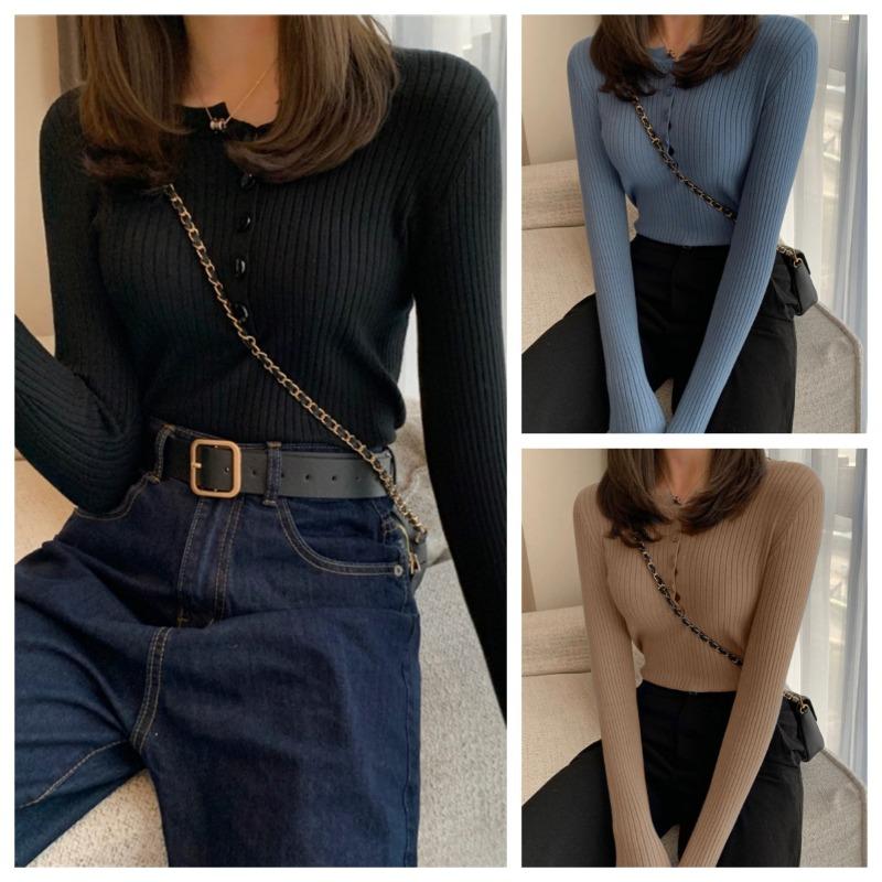 Женский вязаный свитер с длинным рукавом, весна-осень, пуговица с круглым вырезом внутри, плотный вязаный пуловер, топ