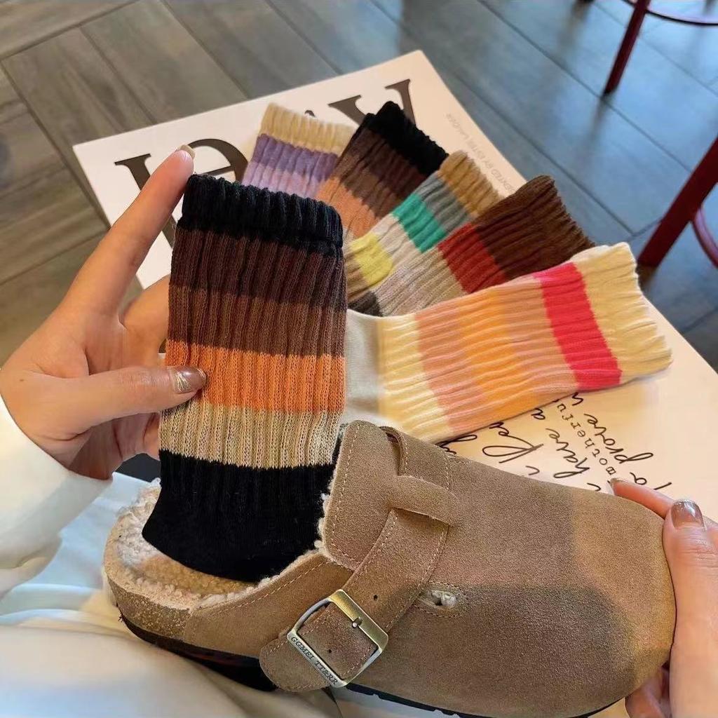 5 пар дышащих и впитывающих пот женских носков средней длины на осень и зиму. Модные и универсальные женские носки, размер 34-42