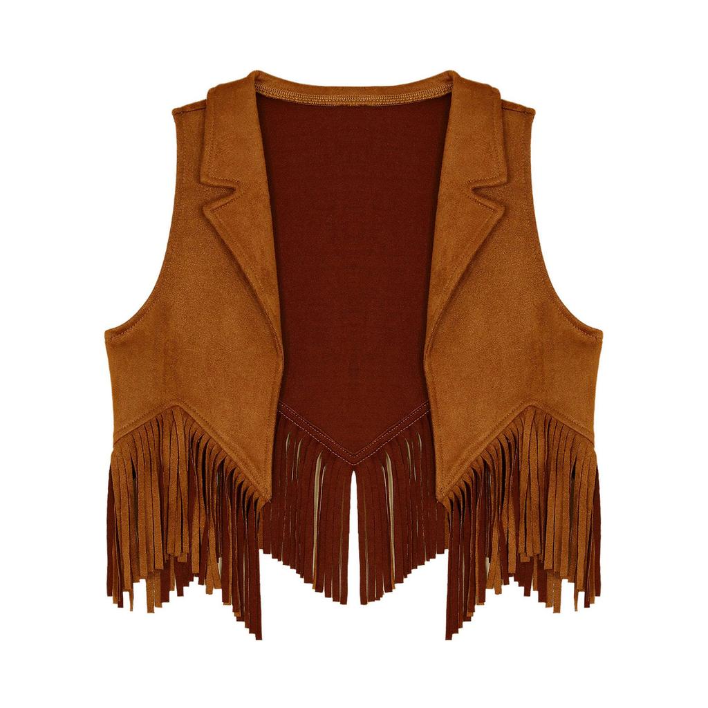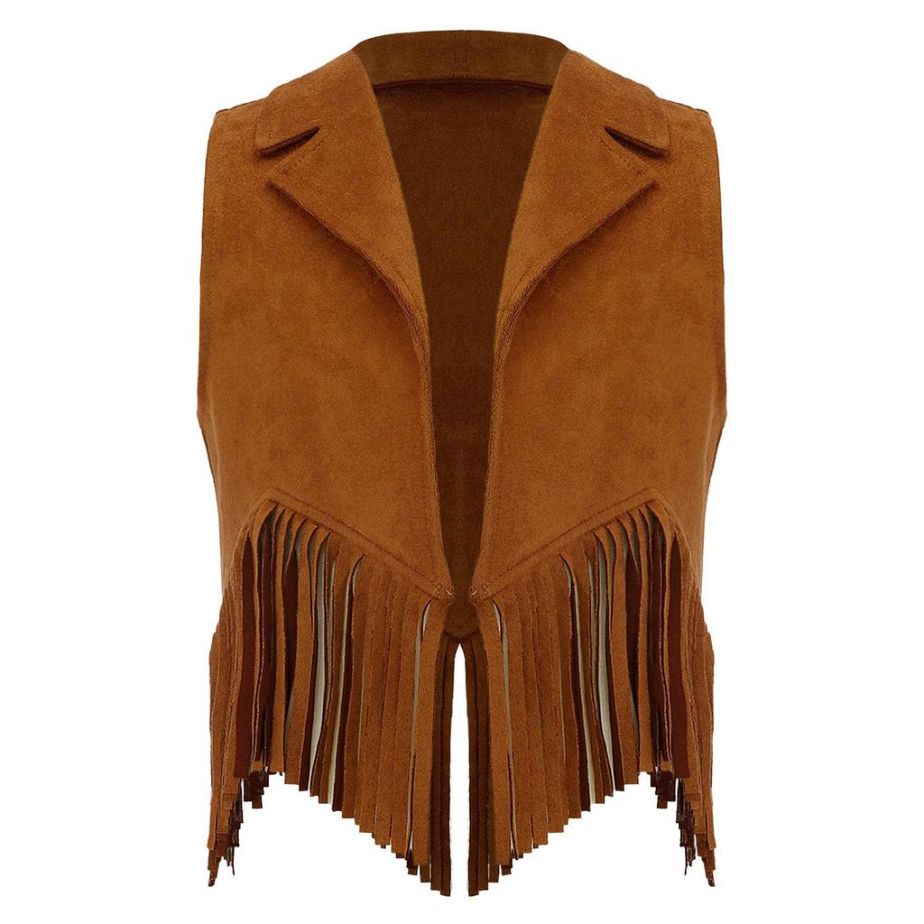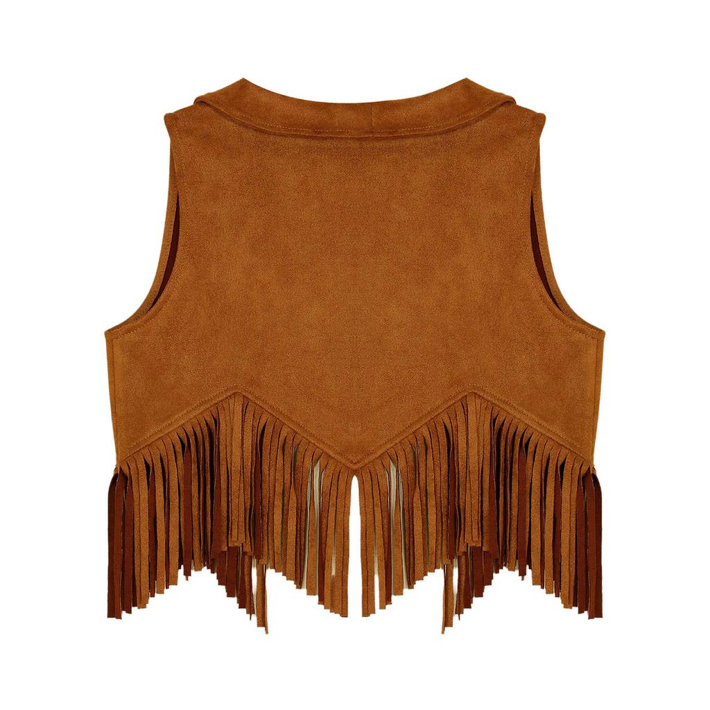 Жилет для девочек с бахромой в стиле хиппи 70-х годов, верхняя одежда без рукавов в стиле ковбой из искусственной замши с кисточками в стиле вестерн