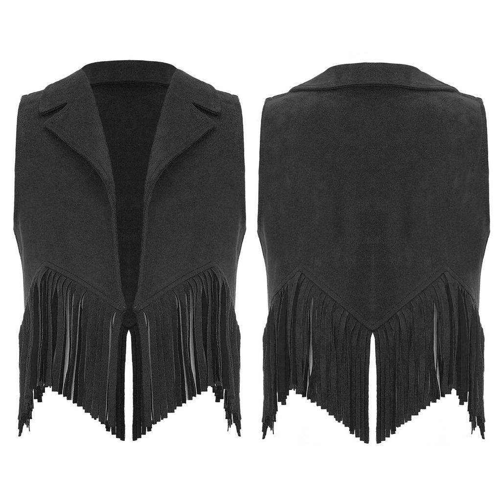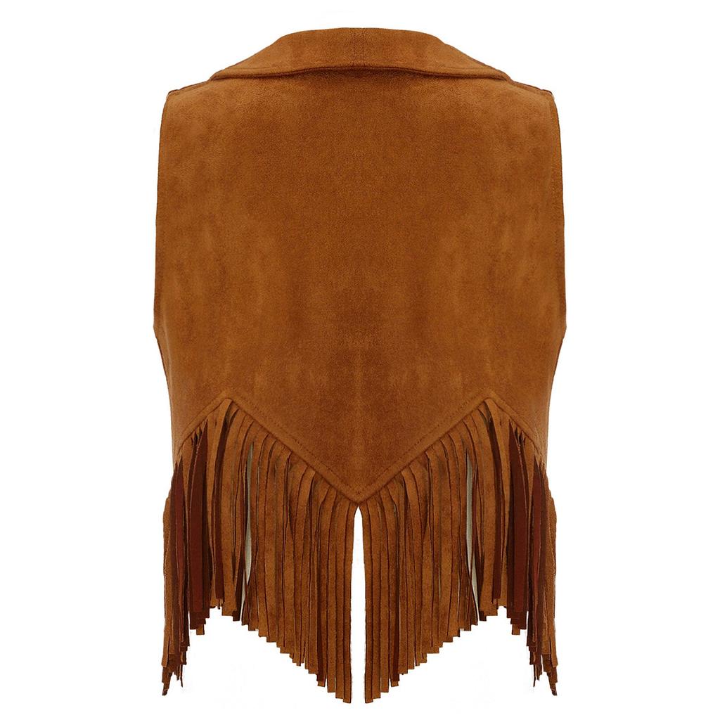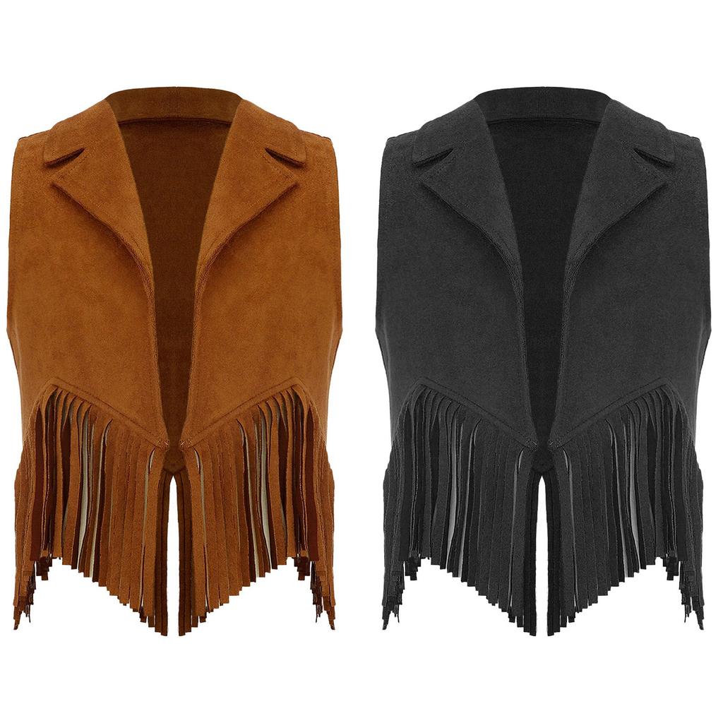 Жилет для девочек с бахромой в стиле хиппи 70-х годов, верхняя одежда без рукавов в стиле ковбой из искусственной замши с кисточками в стиле вестерн