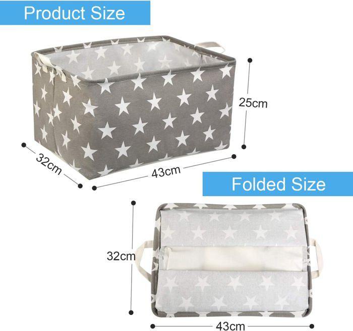 Boîte de Rangement - NEWSTYLE - Motif étoile - Tissu en lin et coton - 40x30x25 cm - Pliable et léger
