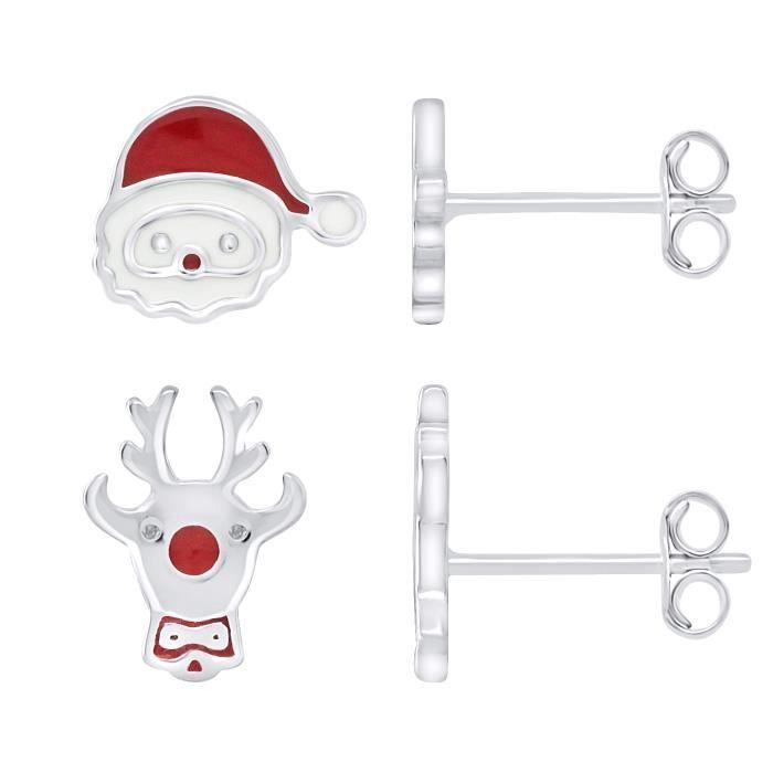 Серьги - LÉA &; АРТУР - Санта Клаус и; Олень - Серебро 925 - Ребенок - Асимметричный