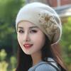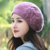 Осенне-зимние шапки Универсальные с бархатным теплом Шапки из кроличьей шерсти Женские вязаные шапки Береты с жемчугом