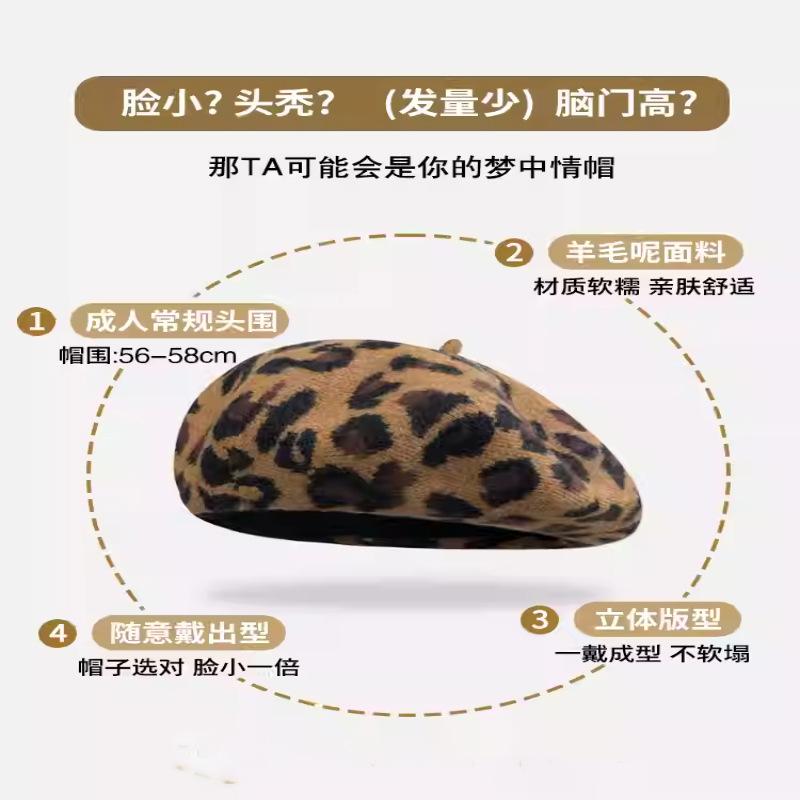 Осенне-зимняя шапка с леопардовым принтом женская шапка-берет модная теплая шляпа художника художественная универсальная шляпа-тыква