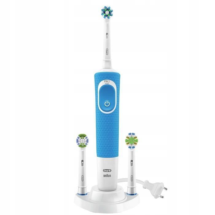 Brosse à dents électrique - Oral-B - Vitality 100 - Bleu - 4 embouts de rechange - Support inclus