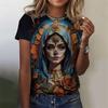 Футболка с рисунком черепа ужасов нежити для женщин, футболки с 3D-принтом для таинственной девушки, летние свободные топы с круглым вырезом, футболки с коротким рукавом
