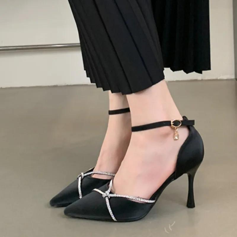 Женские летние сексуальные сандалии с острым носком, фирменный дизайн, женские сандалии 2024 года, элегантные туфли для офиса и пригородных поездок, туфли на шпильках Zapatillas Mu