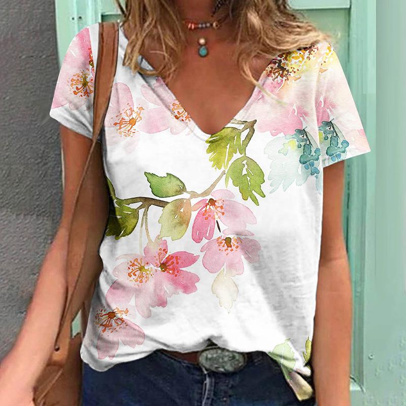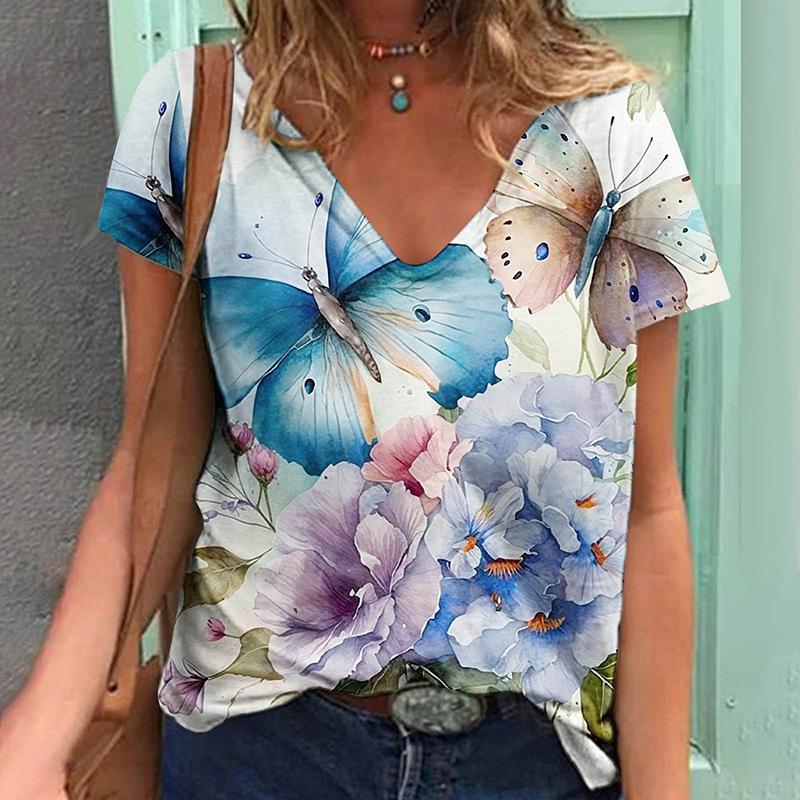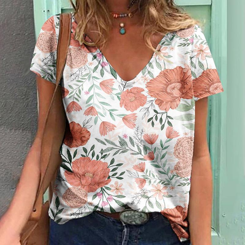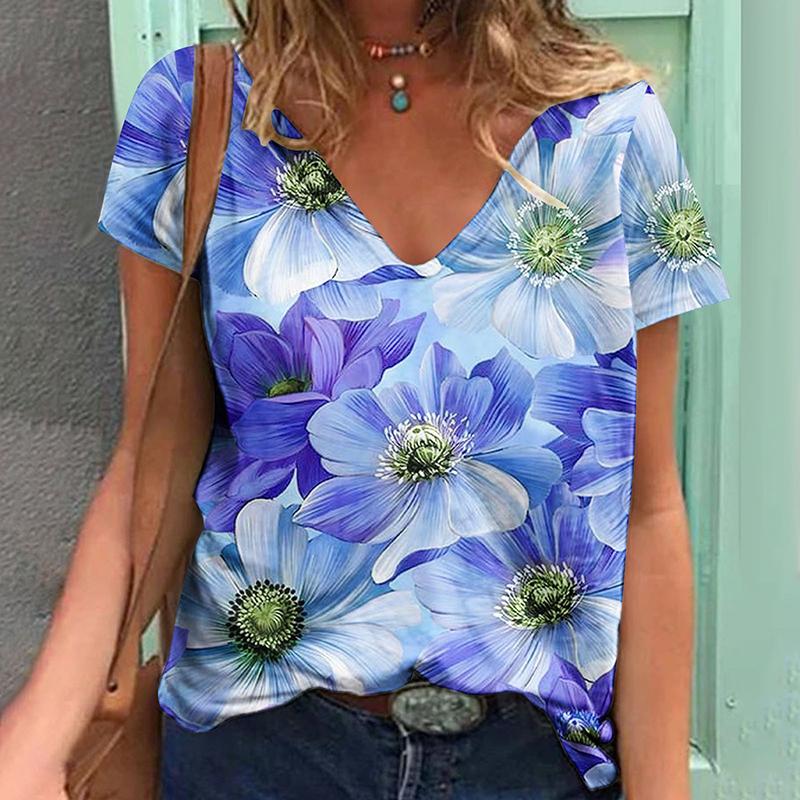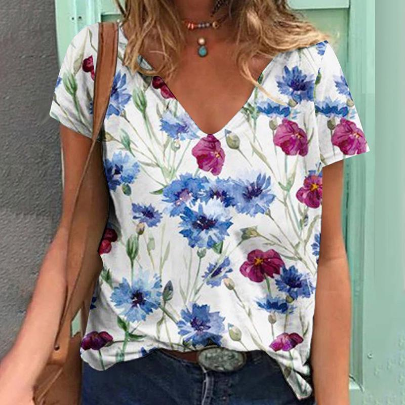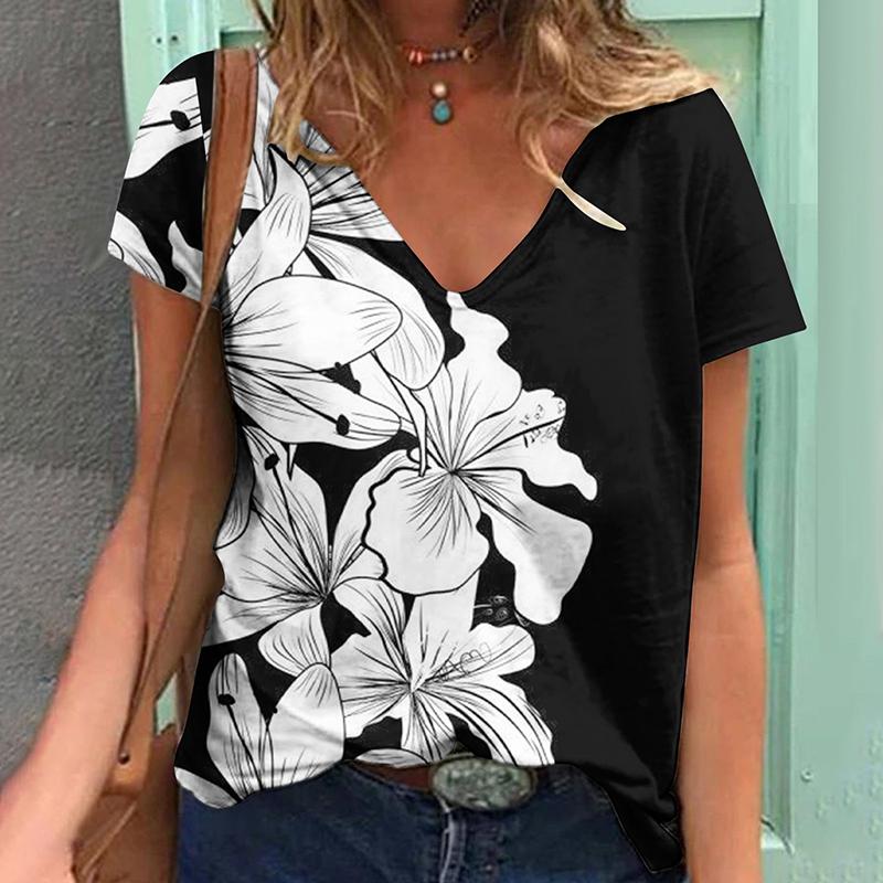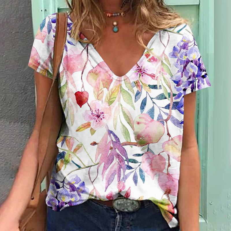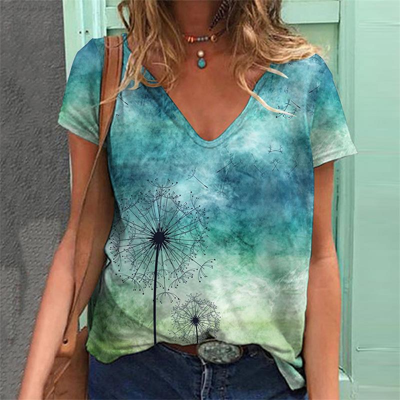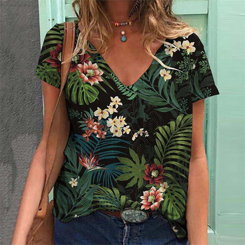 Футболки с 3D-принтом «растение-цветок», женская футболка с V-образным вырезом, короткий рукав, топ Y2k, уличная одежда Harajuku, футболка большого размера, женская одежда