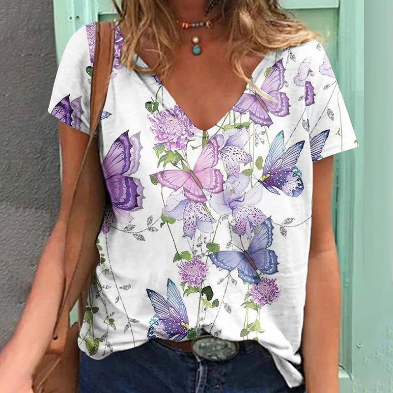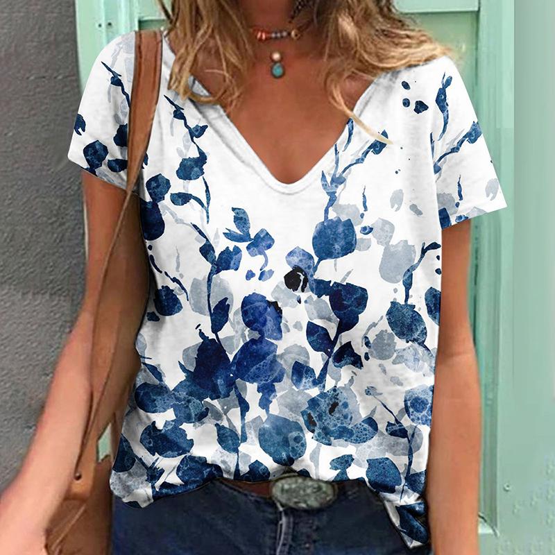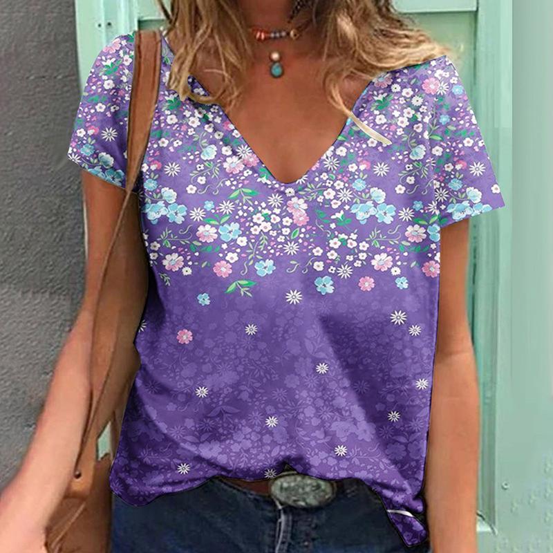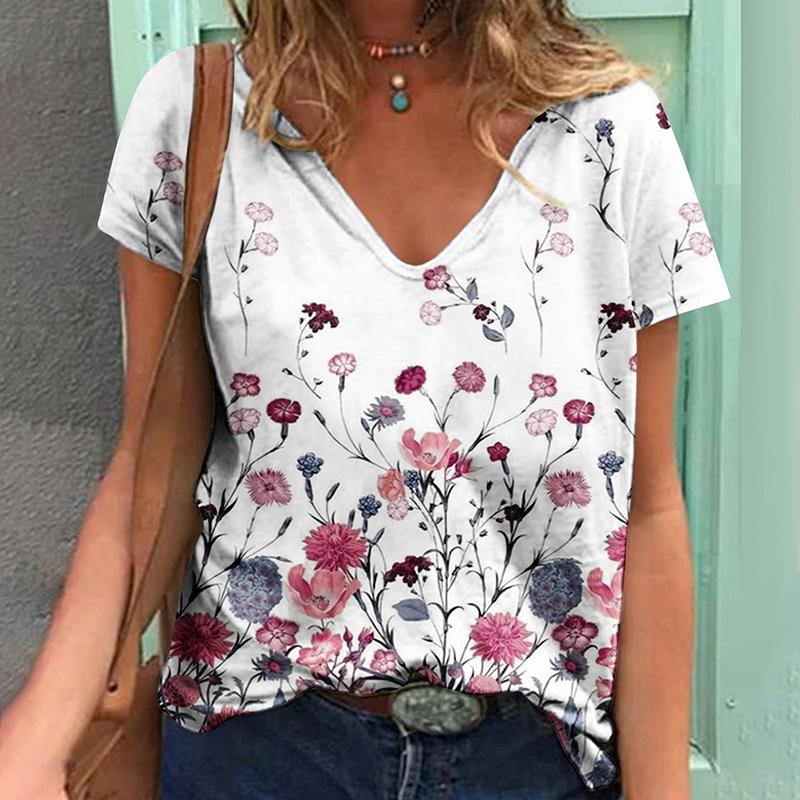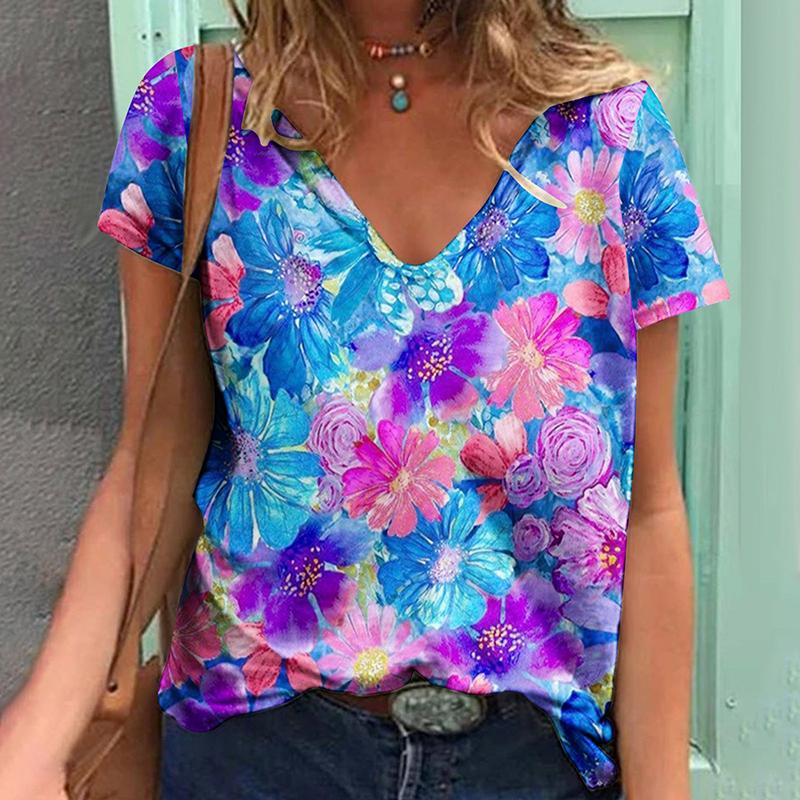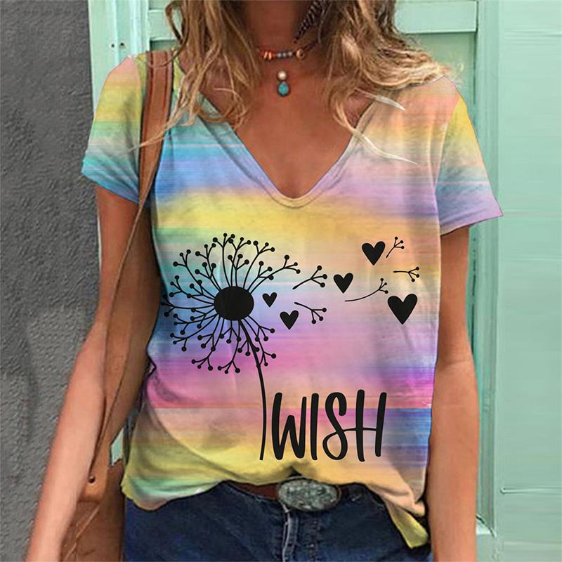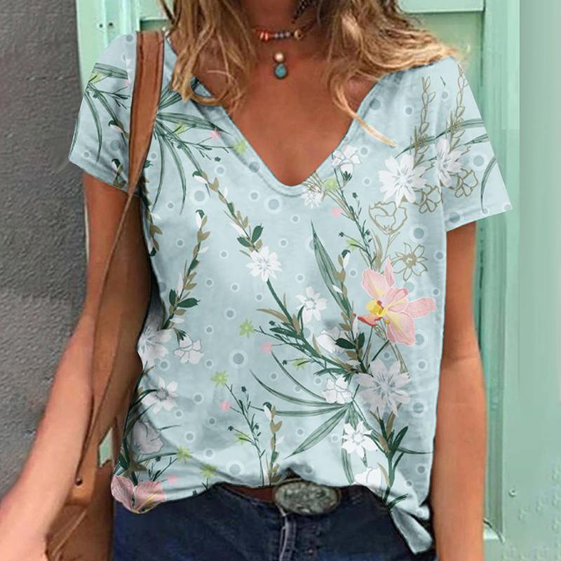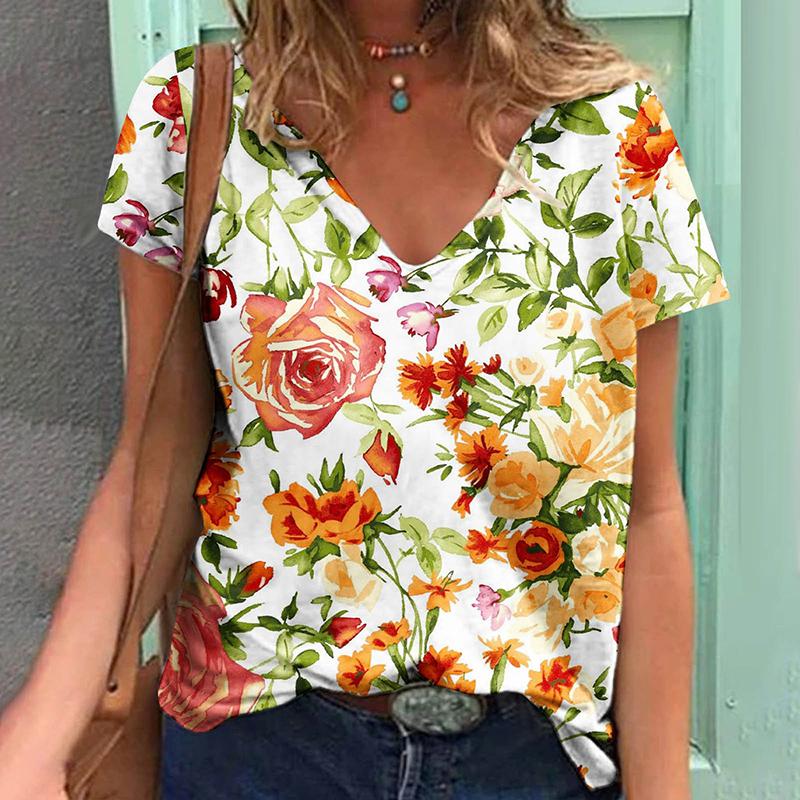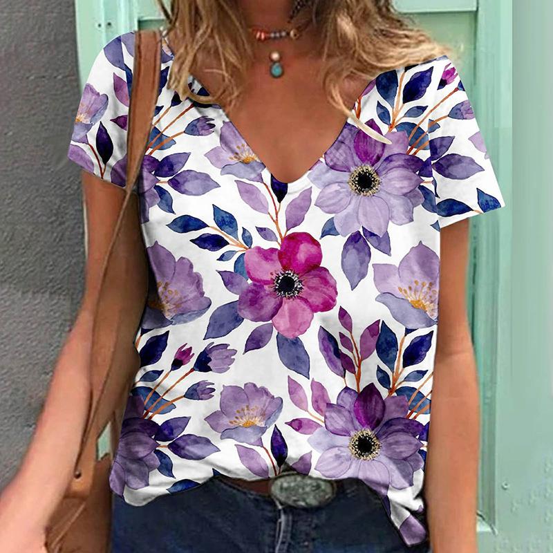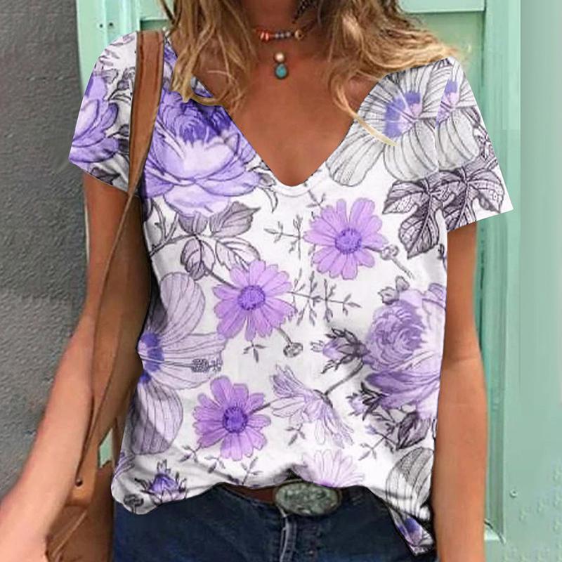 Футболки с 3D-принтом «растение-цветок», женская футболка с V-образным вырезом, короткий рукав, топ Y2k, уличная одежда Harajuku, футболка большого размера, женская одежда
