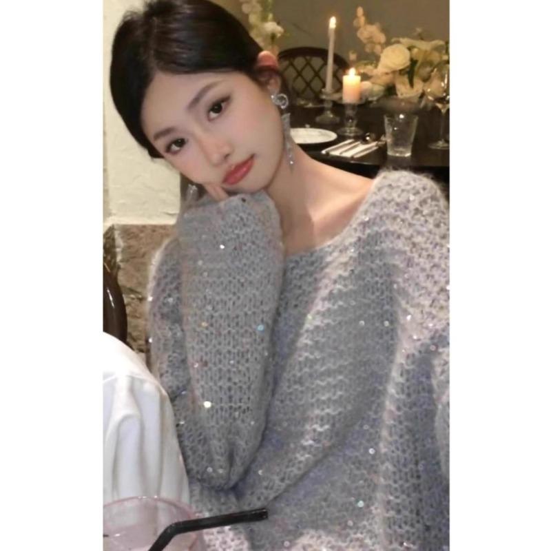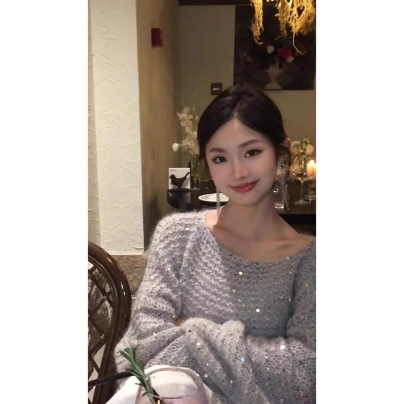 Свободный блестящий свитер Женское осенне-зимнее платье Взрывная мода Продвинутый смысл Мода этого года Красивый трикотажный топ
