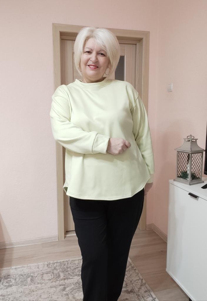 Отличная толстовка!😍 ✔️ Толстовка свободного кроя, ткань приятная на ощупь, красивый цвет. ✔️ Вырез горловины круглый, манжеты на резинке, смотрится красиво. ✔️ Материал полиэстер с уплотнением, приятный тактильно. ✔️После деликатной стирки изменений нет. ✔️ Такую вещь можно сочетать с чем угодно. ✔️ Размерный ряд от L до 4 ХL соответствует описанию ✔️ Заказала размер 2XL подошёл хорошо . ✔️У продавца в наличии несколько ярких цветов на выбор. ✈️Посылка шла около десяти дней в Молдову-Кишинёв ✔️Посылка была упаковано отлично. ✔️Нитки не торчат. ✔️Нет неприятного запаха. ✔️Дизайн интересный. ✔️Качество хорошее. ✔️Размер подошёл мне свободно. Мои параметры: Рост - 1,65 см. ОГ - 110 см. ОТ - 100 см. ОБ - 115 см. Однозначно рекомендую к покупке 🥰