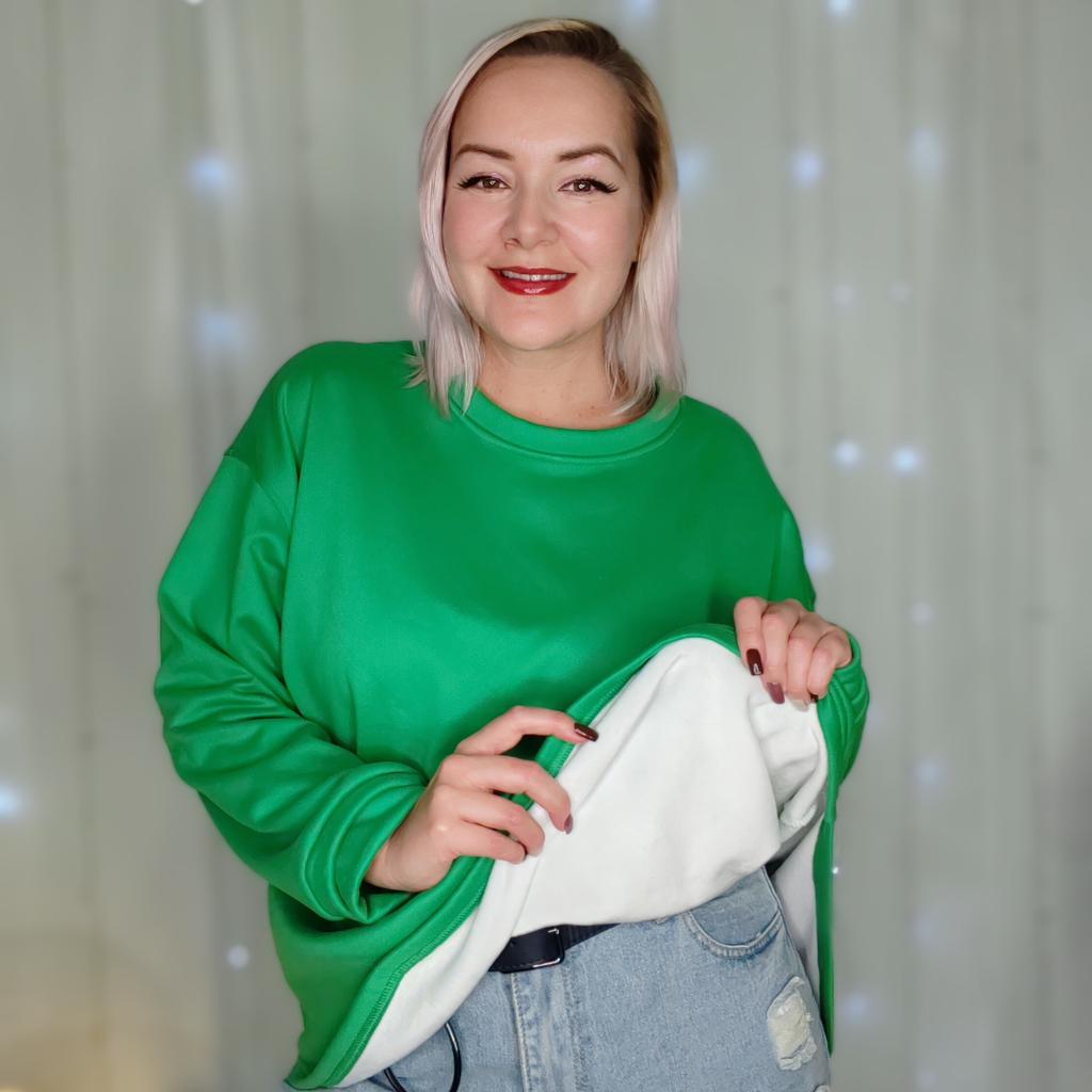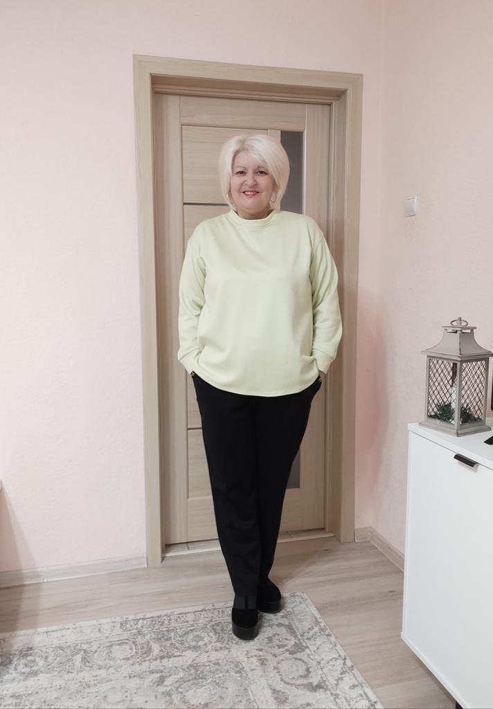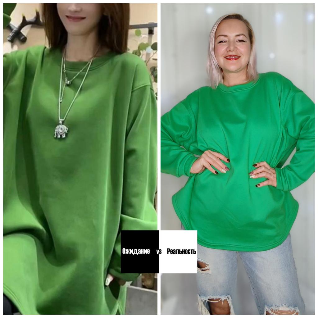 Тёплый зелёный свитшот 🎄 Эта вещь — словно ваш любимый домашний халат, её не хочется снимать! Ткань: В профессиональных кругах её называют«сэндвич». Она состоит из двух слоёв: верхний — приятный и плотный, как у качественных спортивных толстовок из дорогих магазинов. Внутри — слой мягкого, почти флисового материала. Но это не привычный нам флис, а скорее короткостриженный «мех» белого цвета, мягкий, как плюшевая игрушка. Дизайн: Очень свободная модель!Много места, возможно, сядет даже на 65 размер. Плечи сильно спущены, спинка длиннее переда. Размер: На мне размер 3XL. Мои параметры:рост 172 см, 98/76/106 см. Детали: · Длина: 73/86 см · Плечи: 66 см · Длина рукава: 54 см · Обхват груди (ОГ): 146 см · Обхват талии (ОТ): 142 см Резюме: Достойная вещь!Для невысоких девушек может сойти за платье. Совет по размеру: не стремитесь к оверсайзу без необходимости. Если взять слишком большой, может некрасиво сидеть в районе шеи, а вырез будет слишком глубоким. В целом — рекомендую! 👍 Рада была помочь с выбором! M_K #свитшот #оверсайз #уютнаяодежда #обзор #зеленый_свитшот