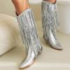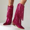 Женские сексуальные блестящие сапоги на толстом каблуке с кисточками, модные роскошные дизайнерские женские сапоги до колена, стильные заостренные женские сапоги-челси для подиума