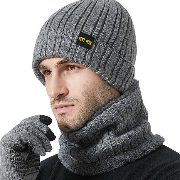 Мужская вязаная шапка, шарф, перчатки для сенсорных экранов, комплект из трех предметов, утолщенный зимний, высокоэластичный, теплый комплект — купить товар онлайн с бесплатной доставкой по всему миру!