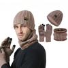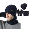 Мужская вязаная шапка, шарф, перчатки для сенсорных экранов, комплект из трех предметов, утолщенный зимний, высокоэластичный, теплый комплект