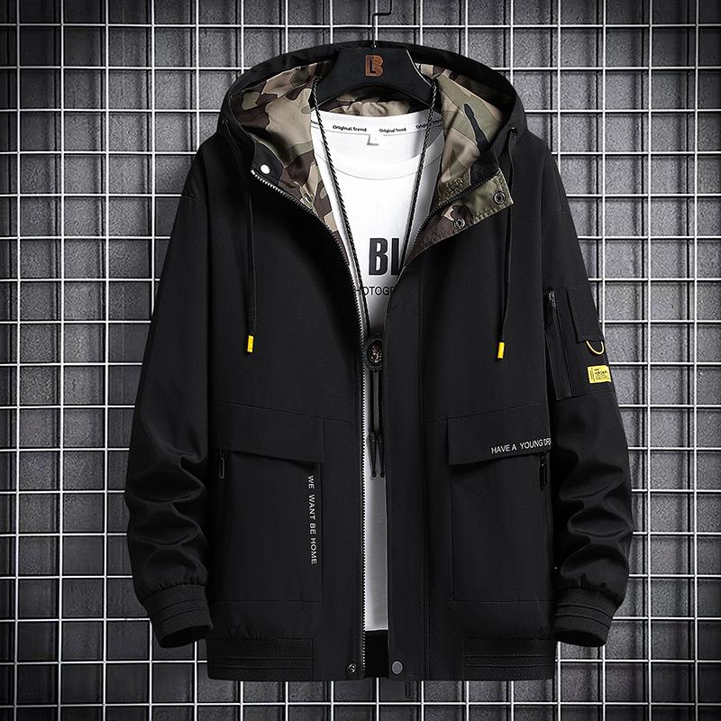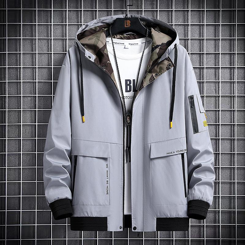 Весна и осень мужская повседневная модная куртка свободная рабочая одежда куртка с капюшоном мужское пальто ветровка