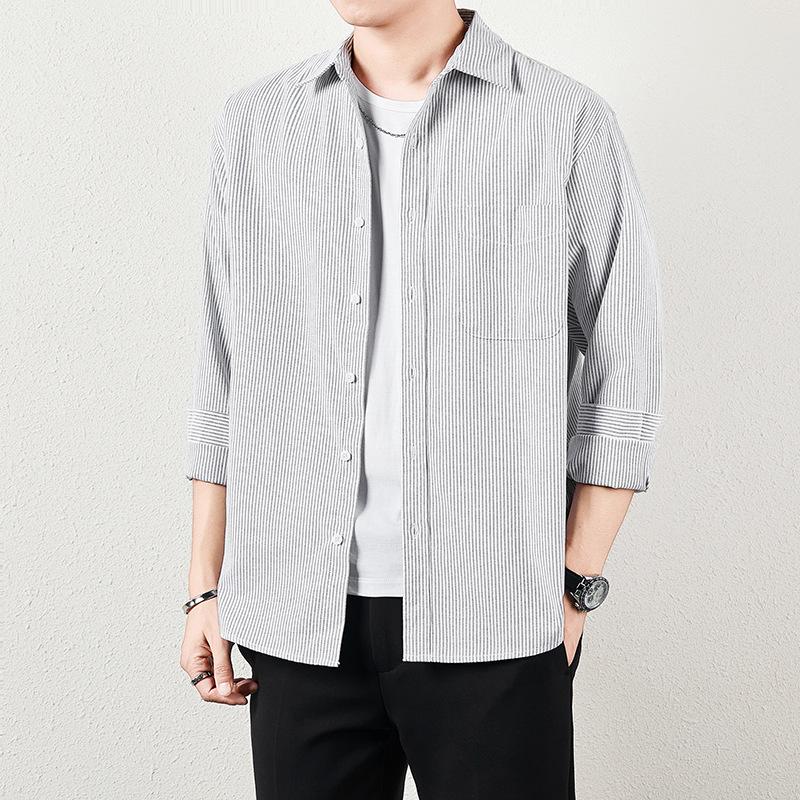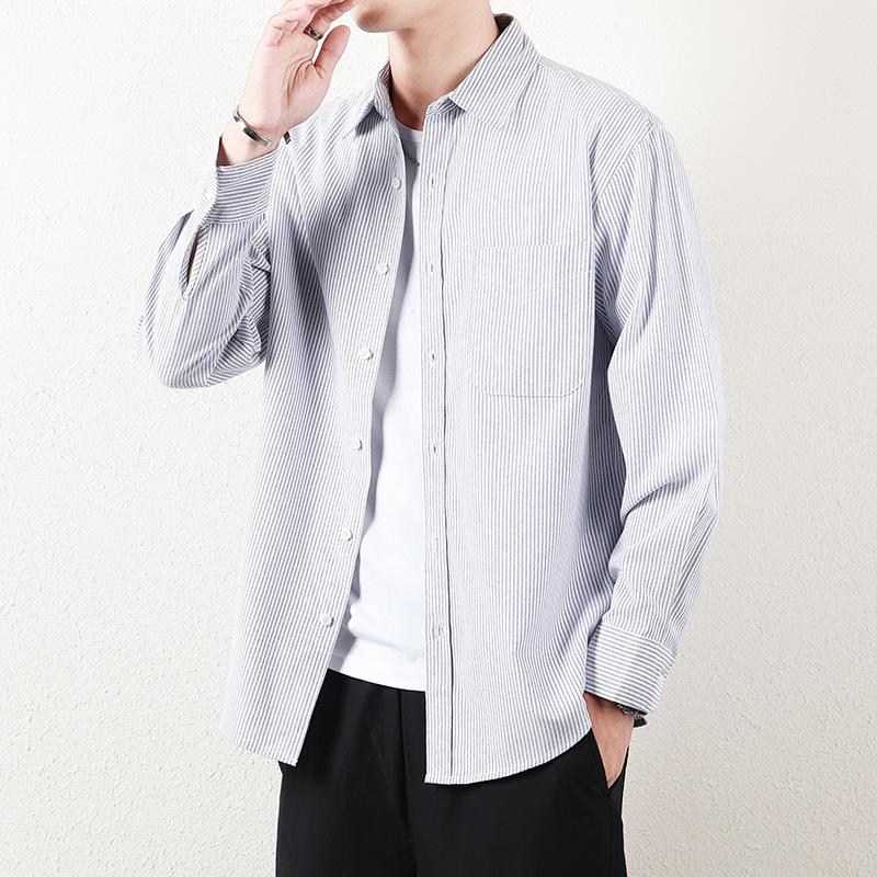 Весенне-осенняя мужская полосатая рубашка, новая универсальная модная повседневная рубашка с длинным рукавом