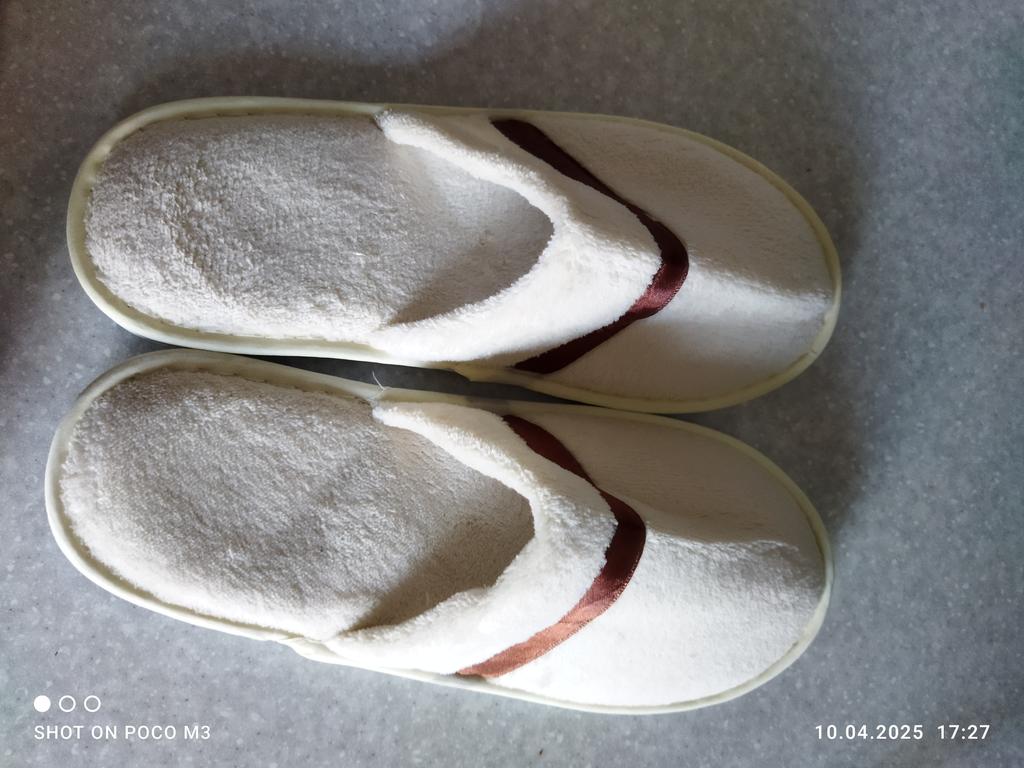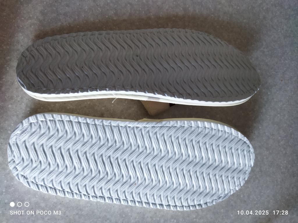 Тапки хорошие. На 39размер - большемерят на 1,5 см. А так хорошие тапки. Лёгкие, не прошиты. Нормальные тапки по такой цене. Спасибо! После двух недель носки, ткань на пятках стерлась. Дырки появились.