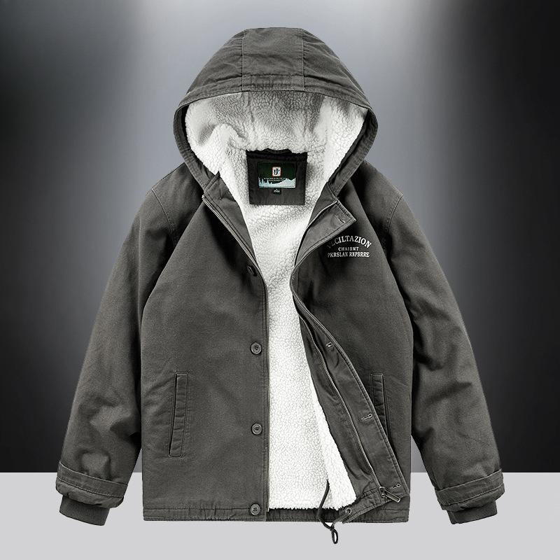 Мужская флисовая утолщенная хлопковая куртка с капюшоном из овечьего флиса Мужская упитанная куртка больших размеров с хлопковой подкладкой