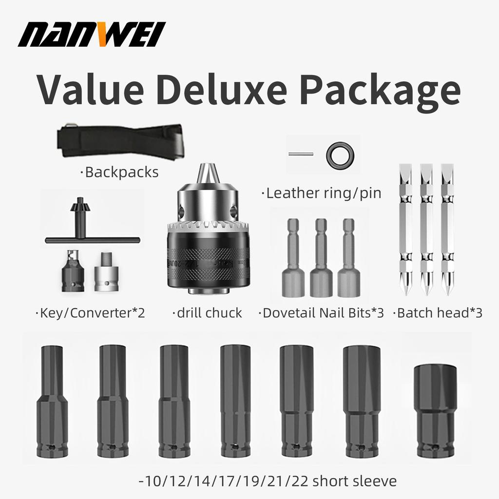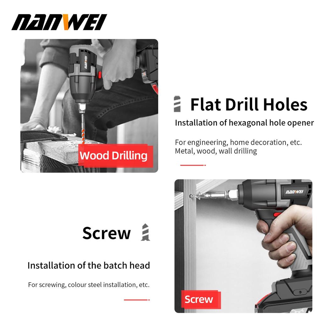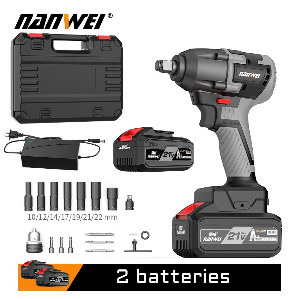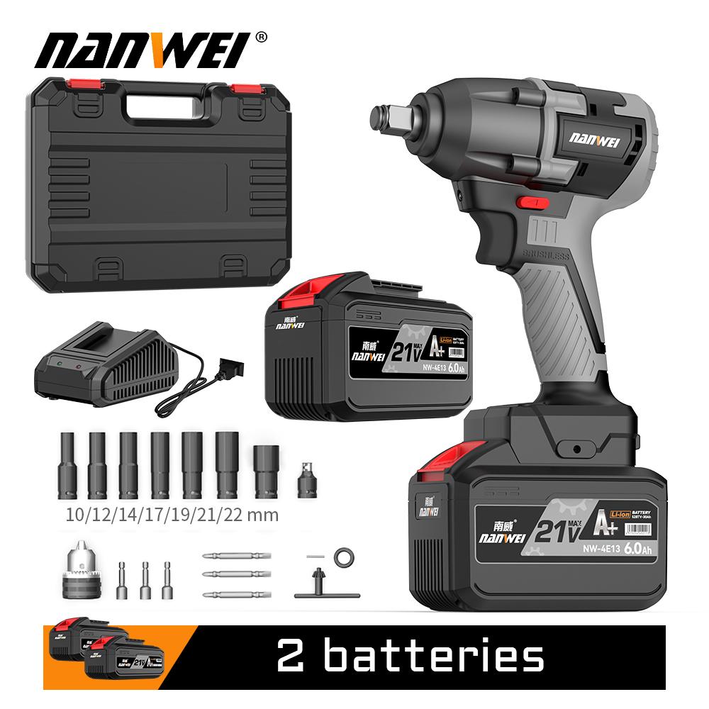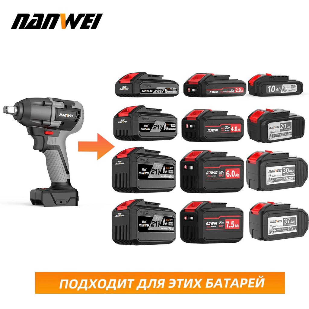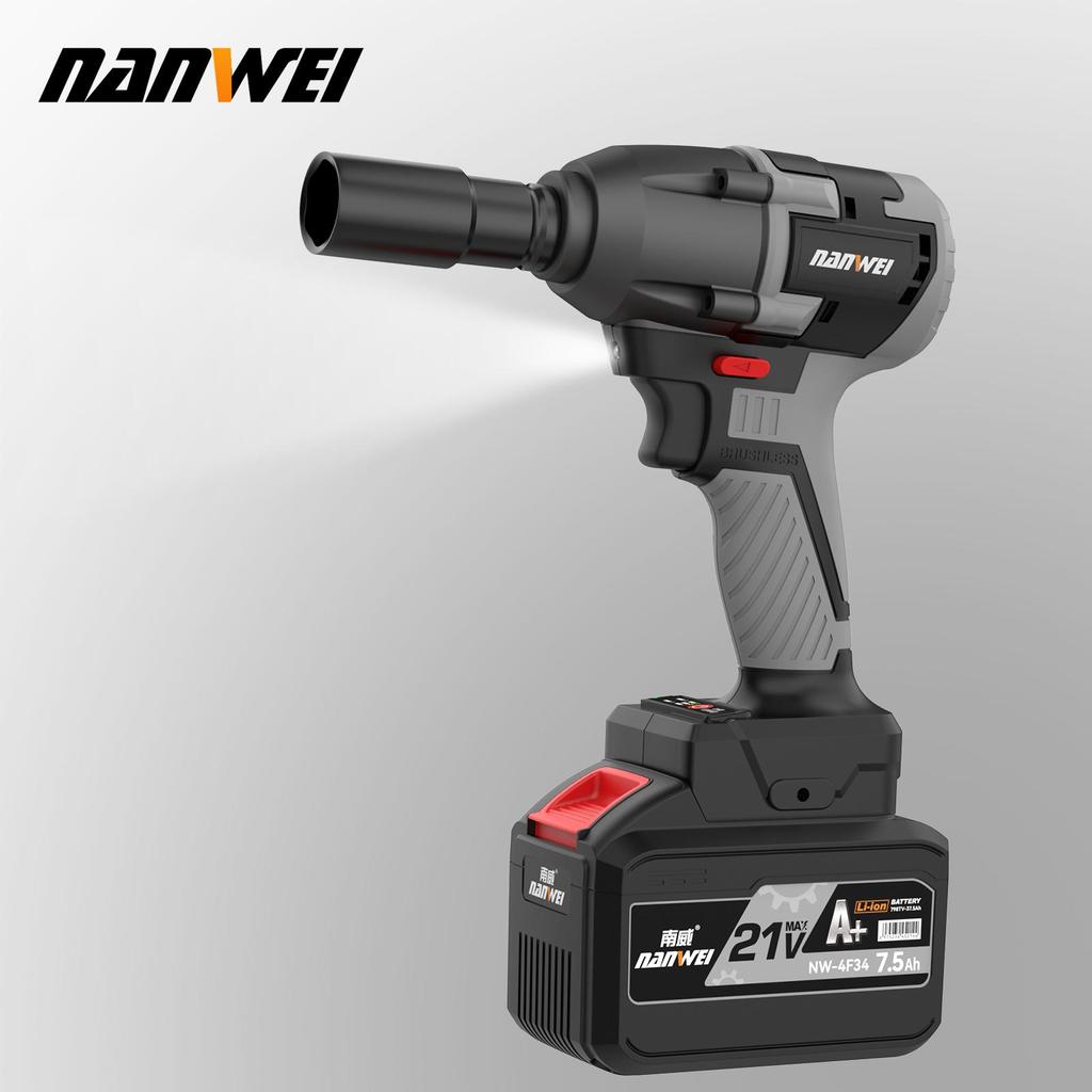 Электрический ударный гайковерт 380 Н NANWEI Бесщеточный двигатель Скорость холостого хода 3000 об/мин Многоцелевое использование