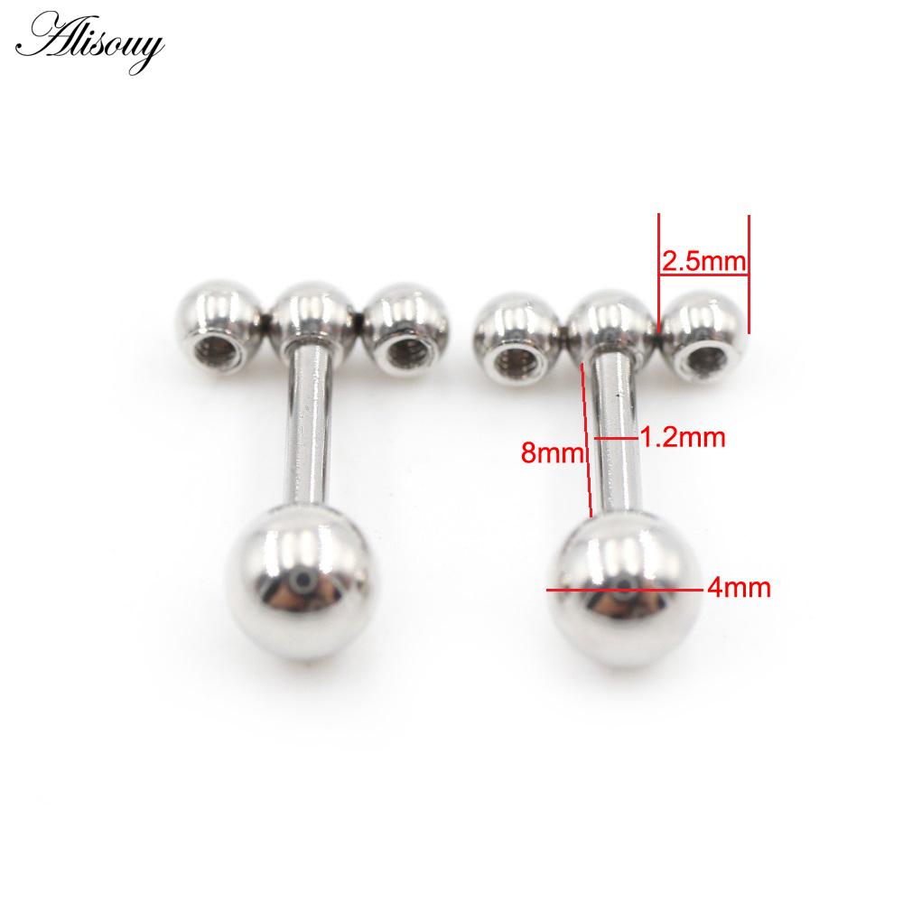 Alisouy 2PC нержавеющая сталь резьба три шарика фасоль женщины мужчины девушка серьги гвоздик хрящ винт серьги пирсинг ювелирные изделия
