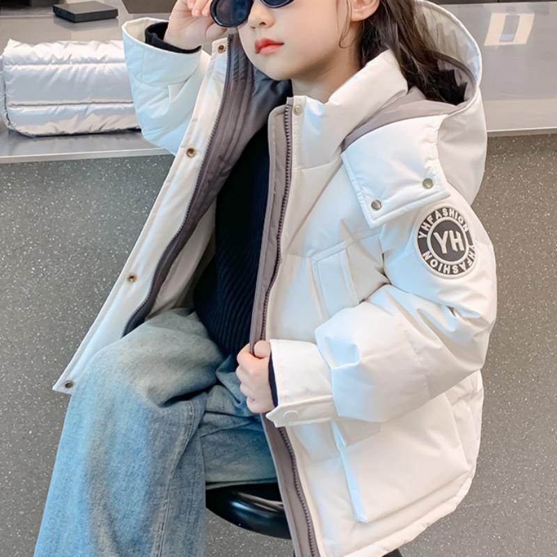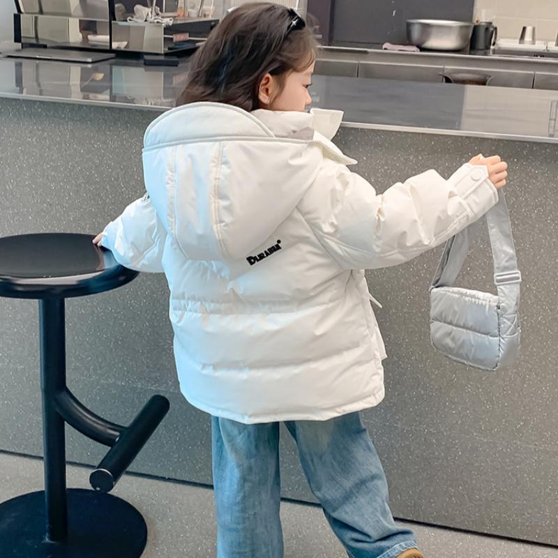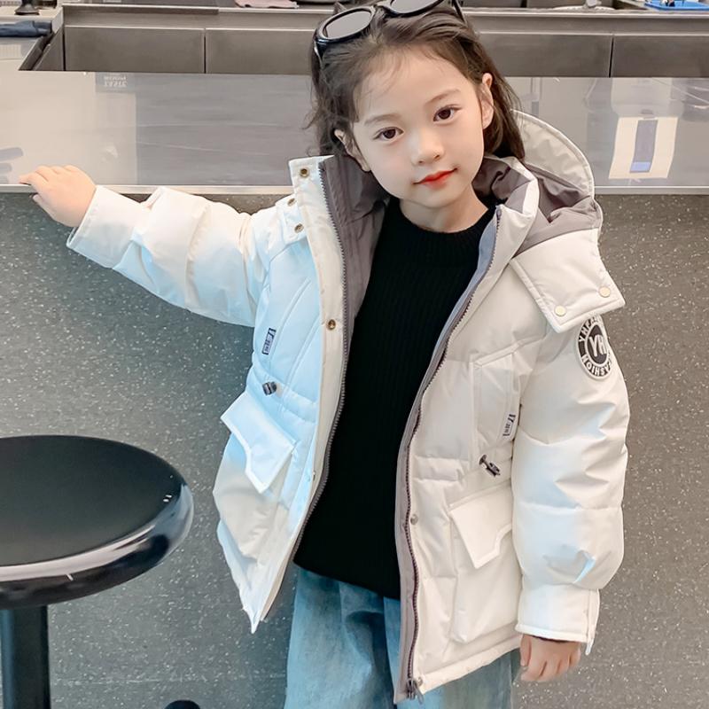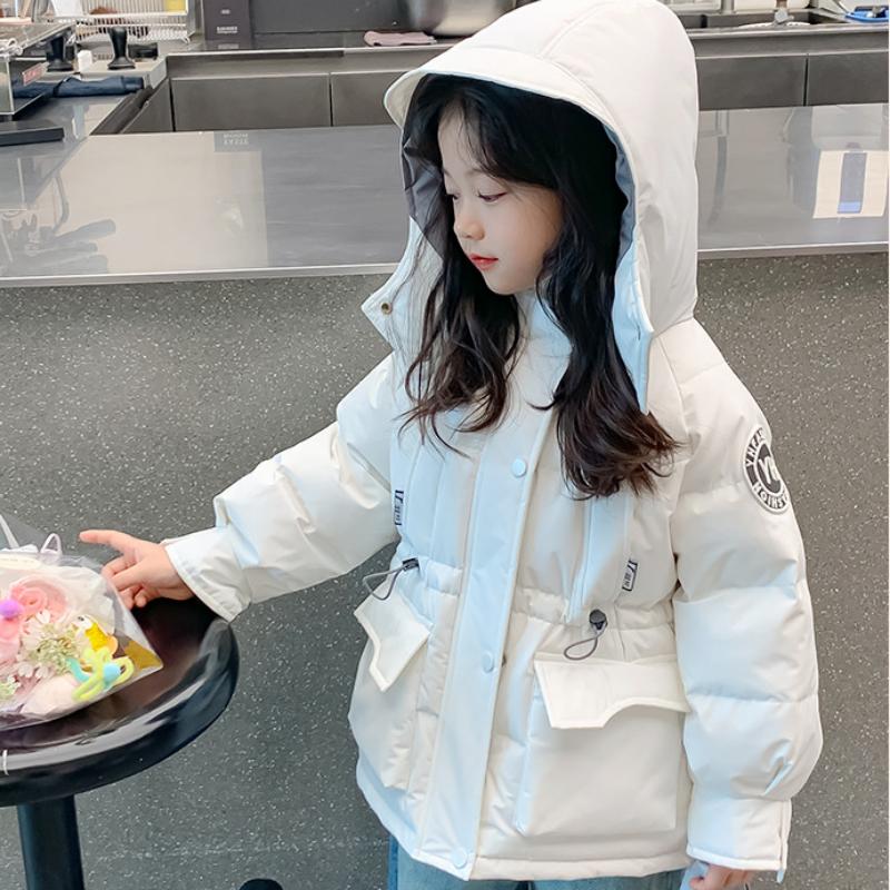 Белая куртка-пуховик для детей в корейском стиле с талией для девочек, зимнее утепленное пальто