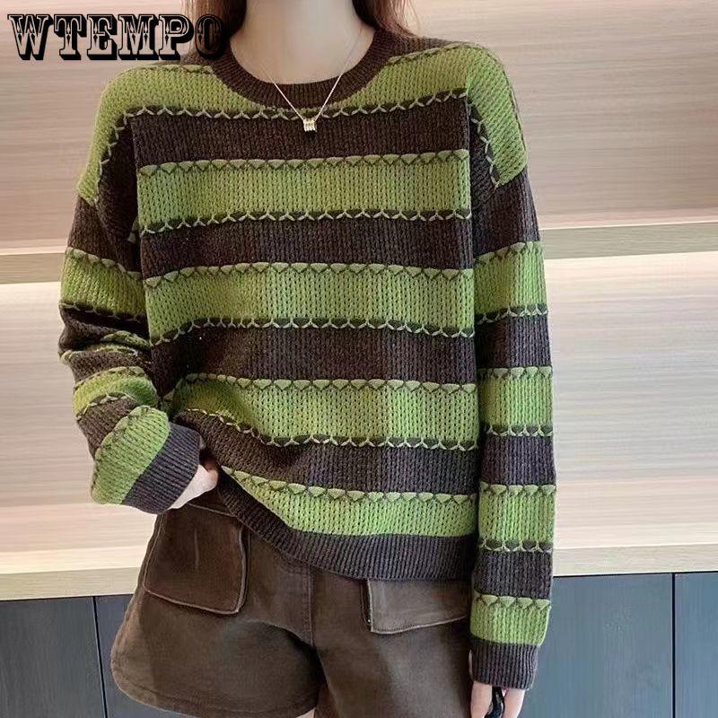 Вязаный свитер в полоску с цветными блоками для женщин, модный и ленивый стиль, свободная и тонкая повседневная базовая рубашка на осень и зиму