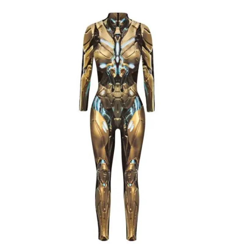 Сексуальный женский комбинезон в стиле панк с роботом, комбинезон, костюмы для косплея, зентай, вечерние боди для выступлений на Хэллоуин, платье