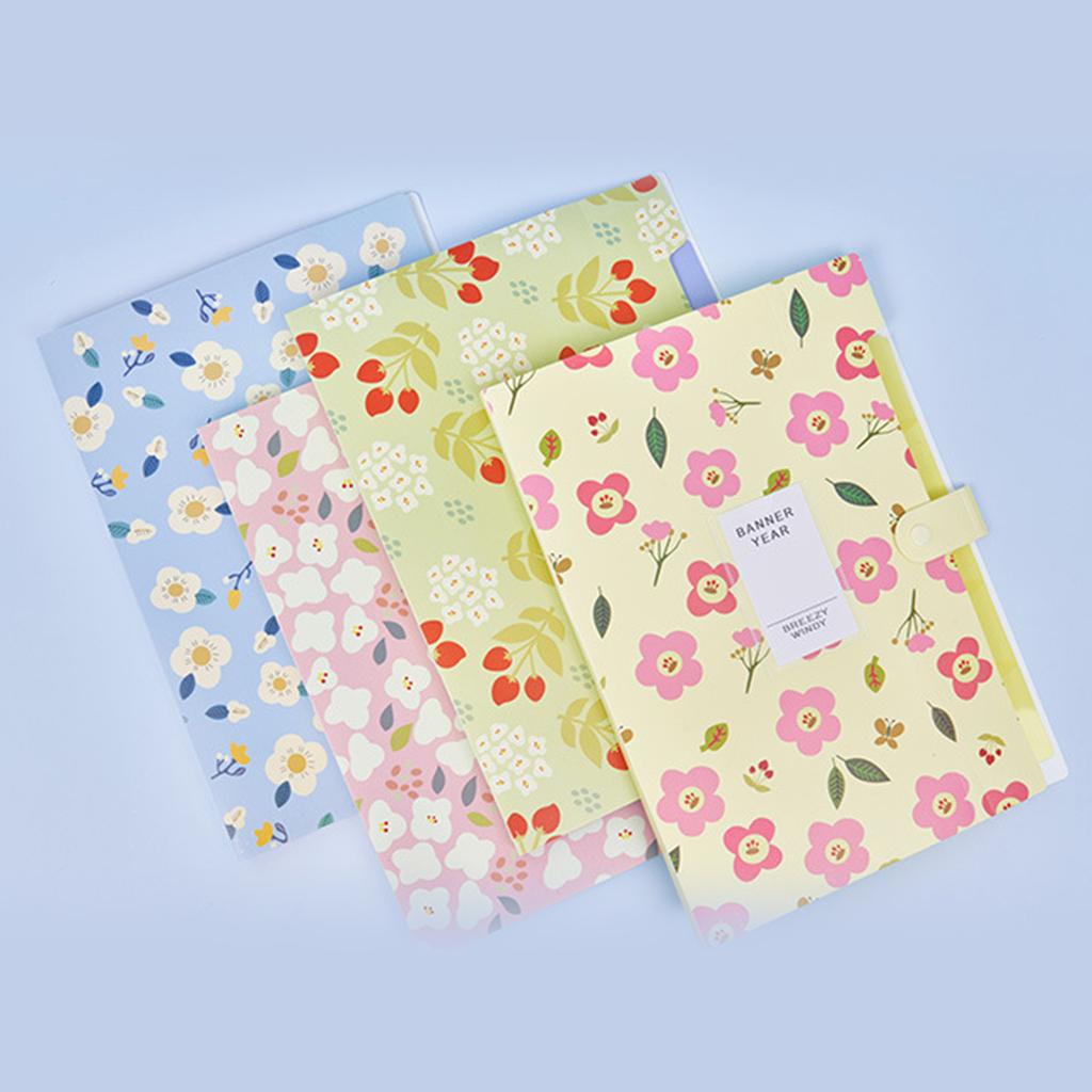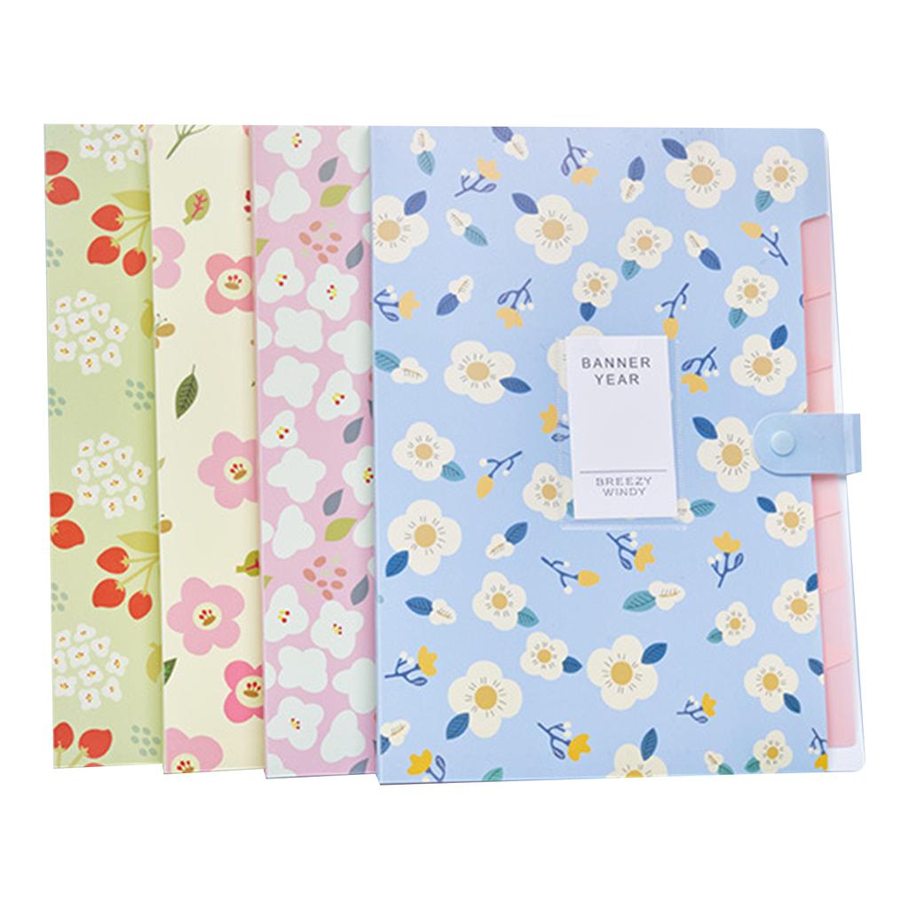 4 шт. Расширяющаяся папка с цветочным принтом и кнопкой-органайзером для документов для школы, офиса и домашнего использования