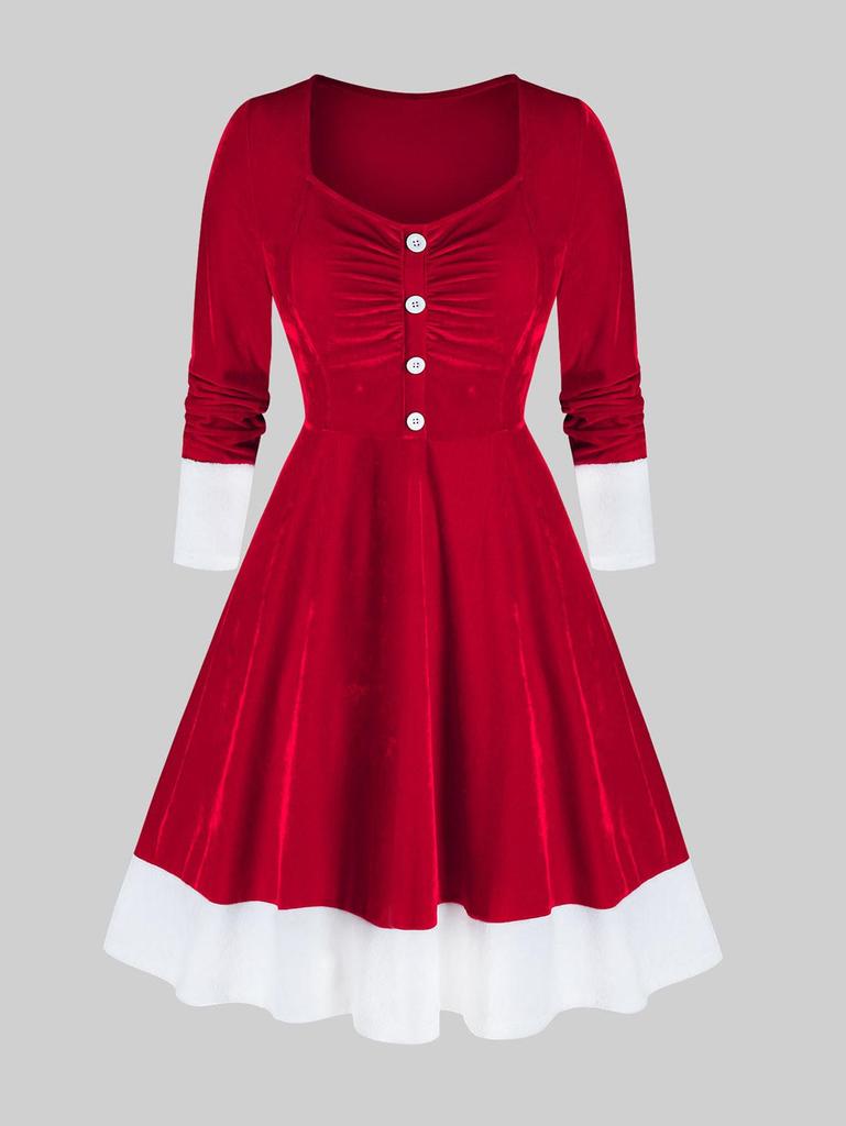 Rosegal Plus Size Рождественский Санта-Клаус Велюровое Двухцветное Платье Расклешенное На Пуговицах — купить товар онлайн с бесплатной доставкой по всему миру!