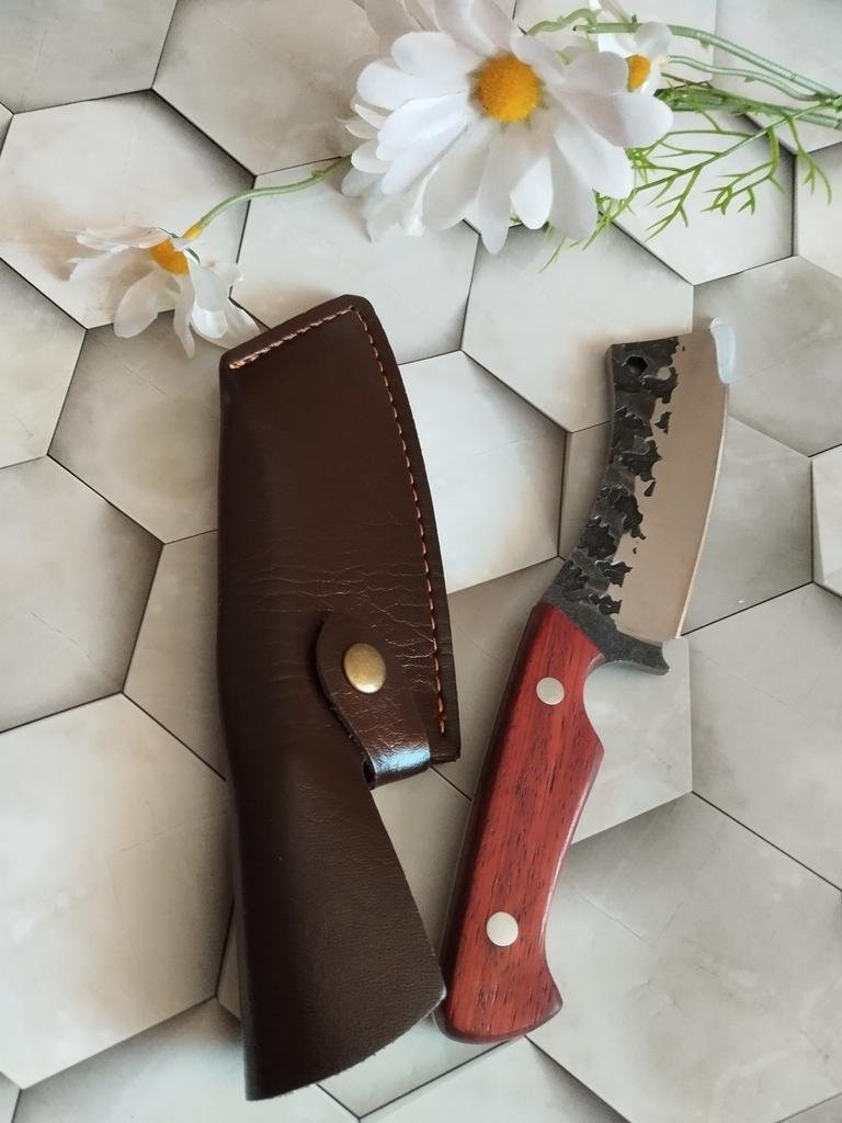 Нож - самое необходимое средство для приготовления пищи. Доставка составила около 2х недель. При транспортировке ничего не повредилось и ножик пришел без брака. Нож приходит в транспортной коробке. Есть заглушка на лезвии и удобный чехол для хранения ножа. Лезвие уже наточенное. Изготовлено из металла и проходит через всю ручку. Ручка деревянная. Нож удобно лежит в руке. Такой отлично подойдет для мяса или шинковки капусты. Покупкой остались довольны. Отличный нож по функционалу и стильное дополнение на кухне. К приобретению рекомендую.