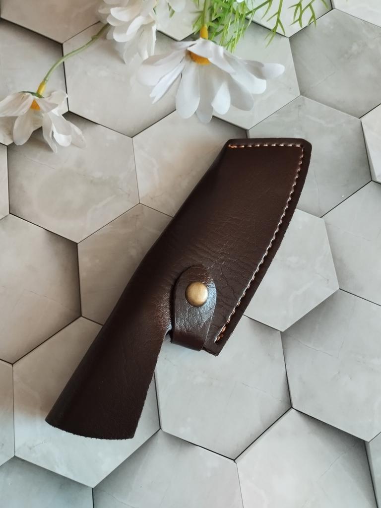 Острый нож из нержавеющей стали в необычном оформлении. Повторная покупка❤👍 🔪 Пришел в картонной коробке, сам нож был упакован в пакет и кожаный чехол 🔪 Выполнен из нержавеющего металла 🔪 По весу достаточно тяжёлый 🔪 Ручка скорее всего пластиковая, но визуально похожа на дерево (выполнена на совесть 👍🏻) 🔪 Лезвие очень острое и режет отлично Легко справляется с куриными костями Замечательный ,качественный и острый нож, мне понравился, такой и не стыдно преподнести в качестве подарка .К покупке могу смело рекомендовать.