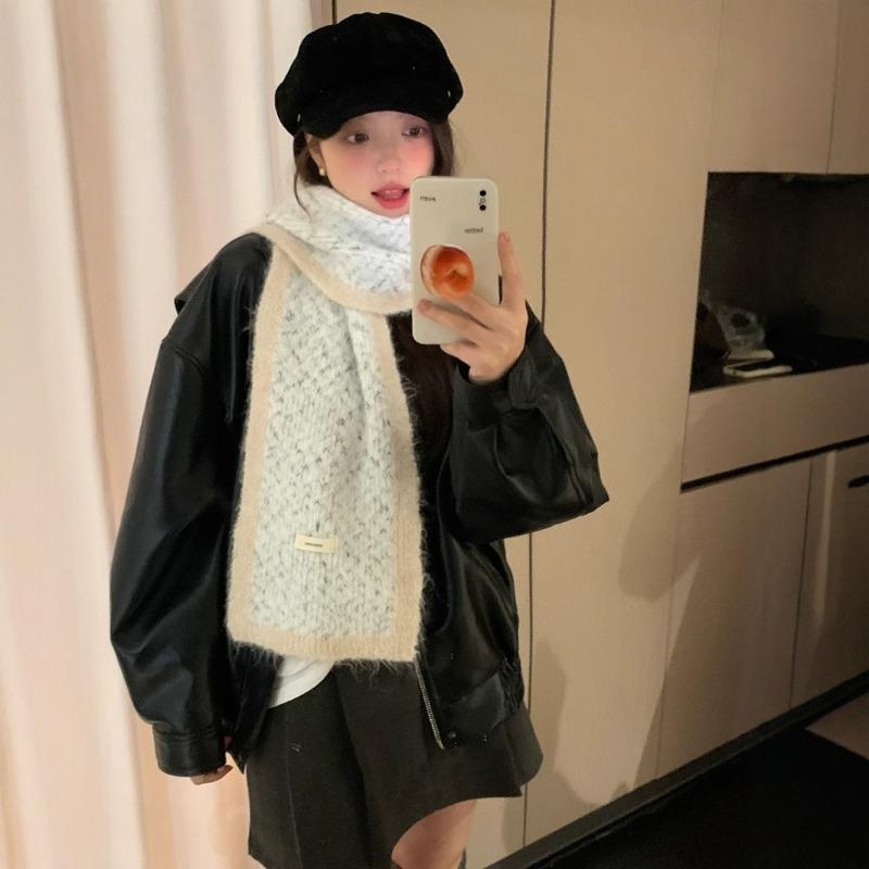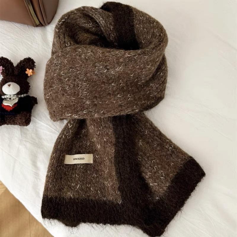 Осенне-зимний теплый утолщенный однотонный шарф для женщин, новый корейский стиль, вязаный универсальный платок, шарфы на шею