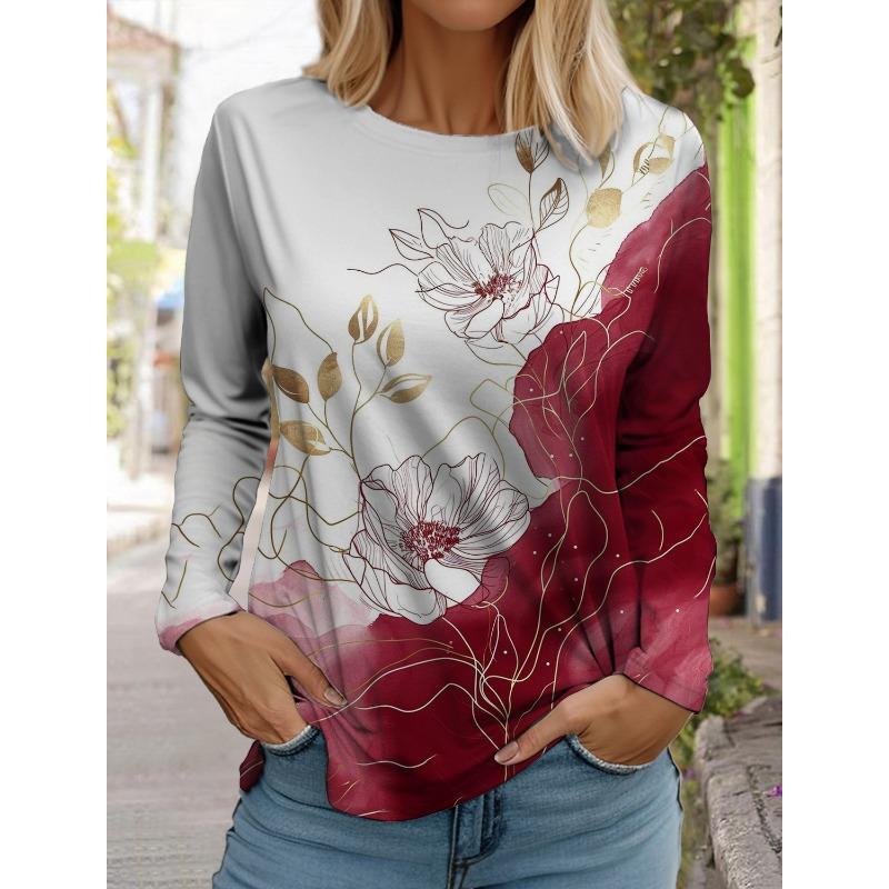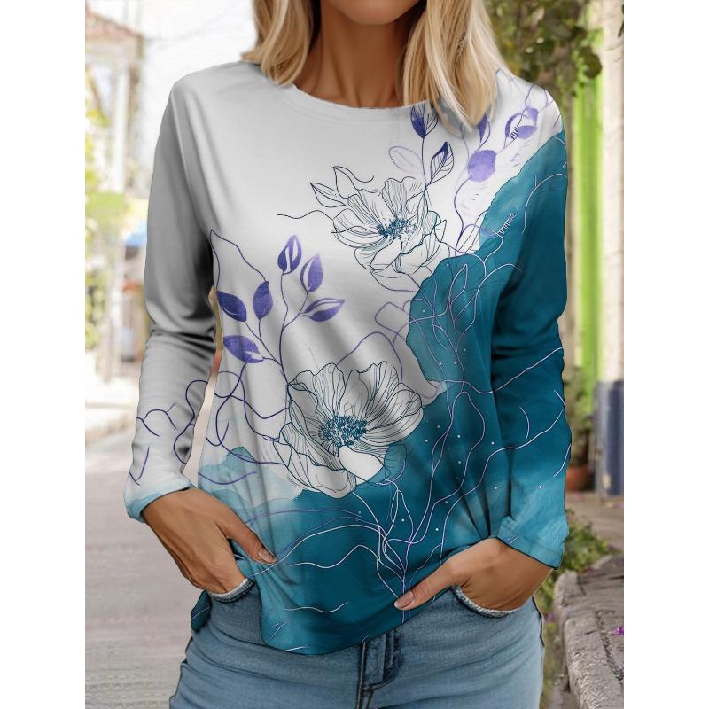 Женские модные топы в гавайском стиле с длинным рукавом и круглым вырезом, повседневная футболка с длинным рукавом, новый 3D-печатный цветочный принт