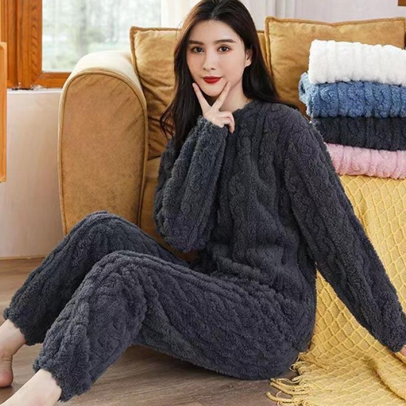 Пижамный комплект из кораллового флиса, женские комплекты для йоги, теплый ветрозащитный жаккардовый комплект, зимний плотный мягкий флис, женский, для пары, повседневный, утепленный