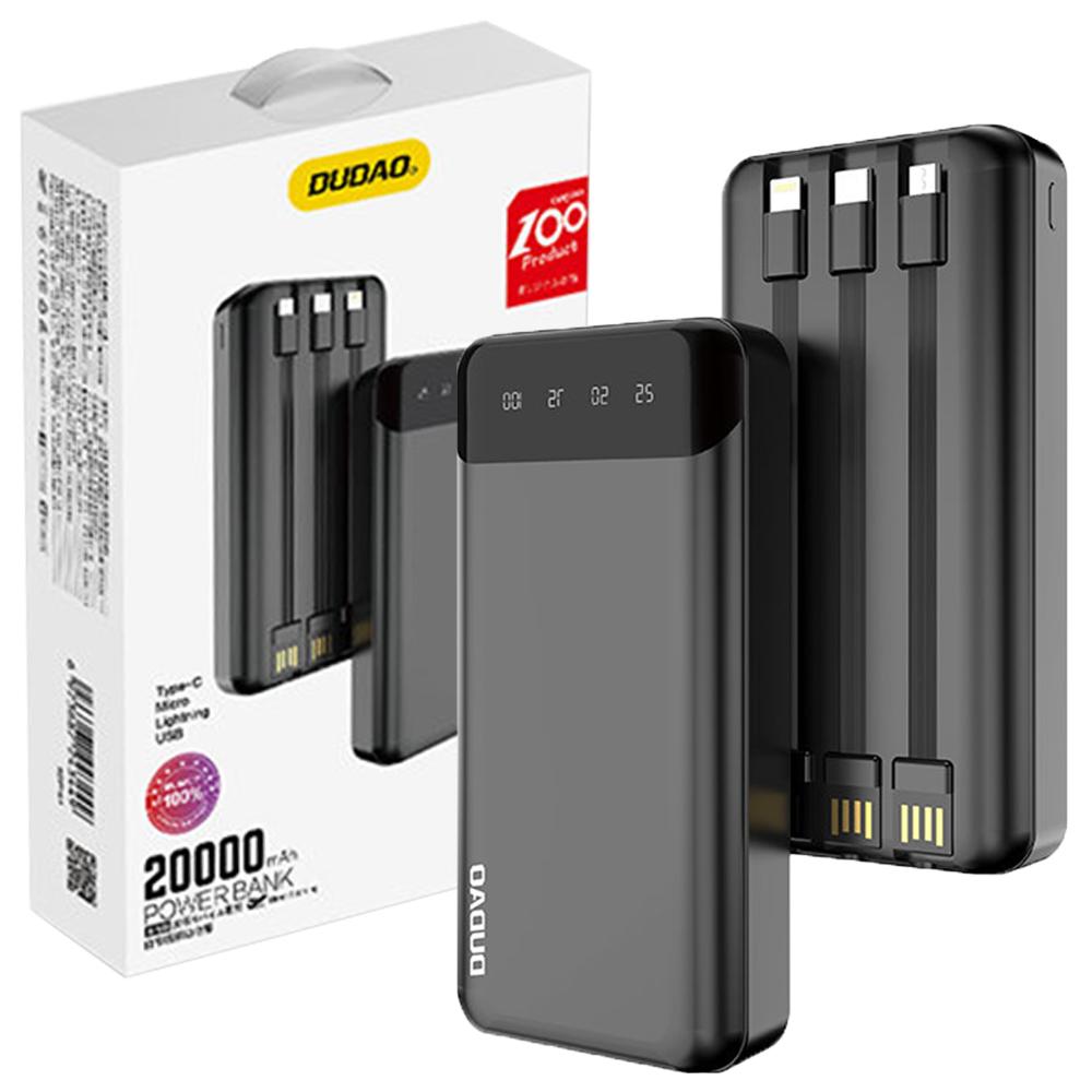 1x DUDAO POWERBANK+3 KABLE 20000MAH USB C + MICRO USB + LIGHTNING CZARNY