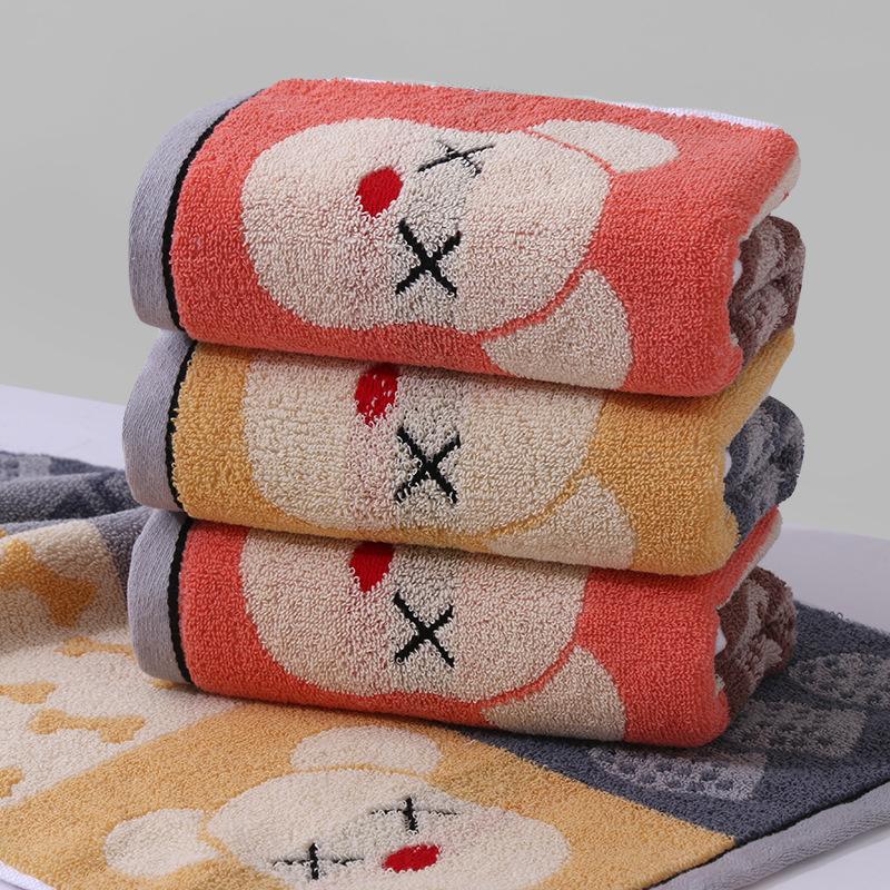 Хлопковое полотенце, окрашенное в пряже, жаккардовое с мультяшным медведем, утолщенное мягкое впитывающее полотенце для лица для взрослых, домашнее полотенце для лица, подарок
