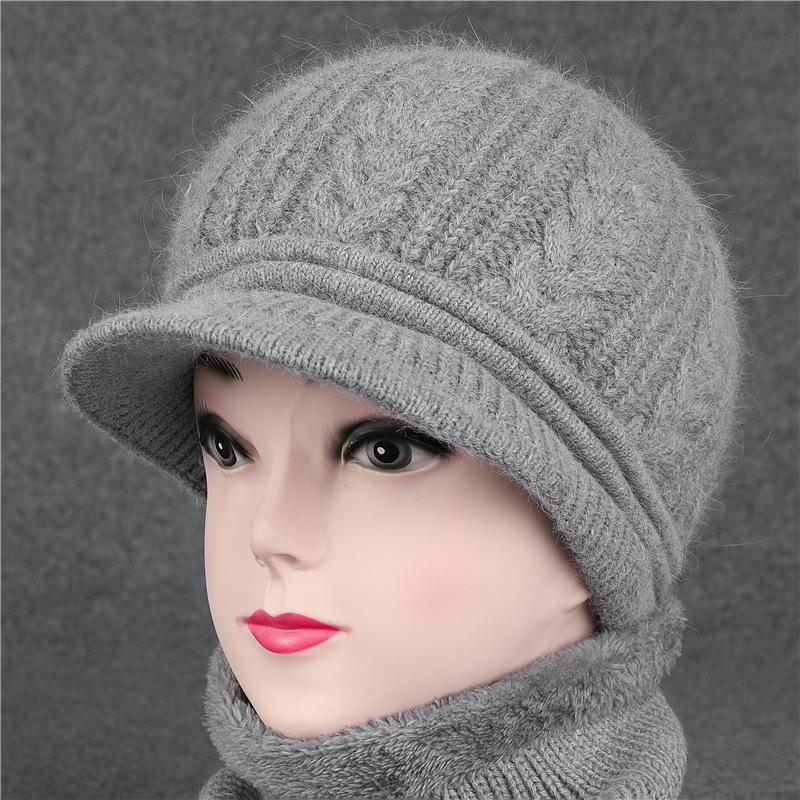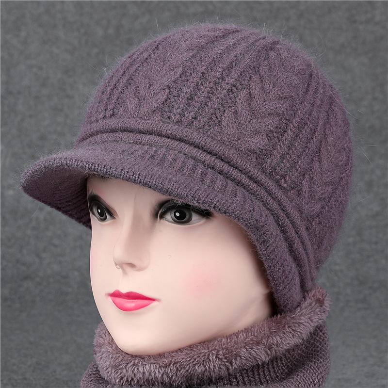 Шапка с утиным язычком для пожилых людей, осенне-зимняя шерстяная шапка с кроликом, вязаная теплая шапка-горшок для матери среднего возраста с бархатом